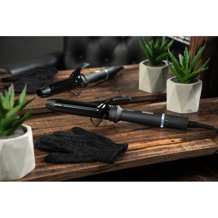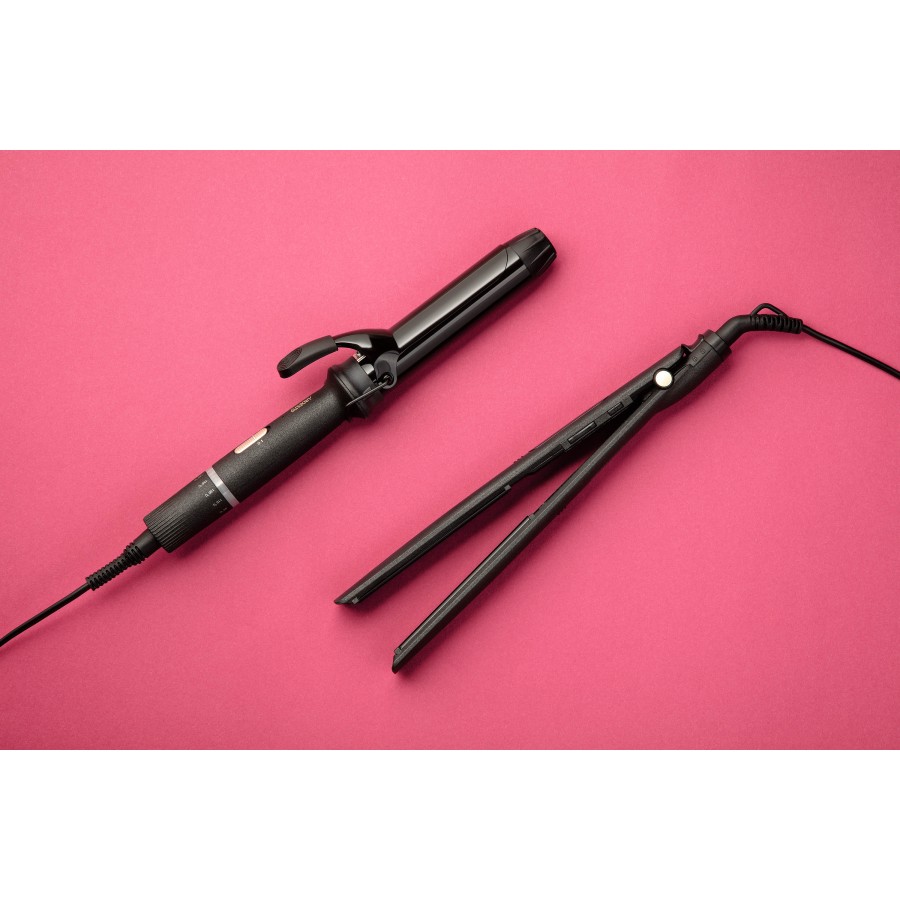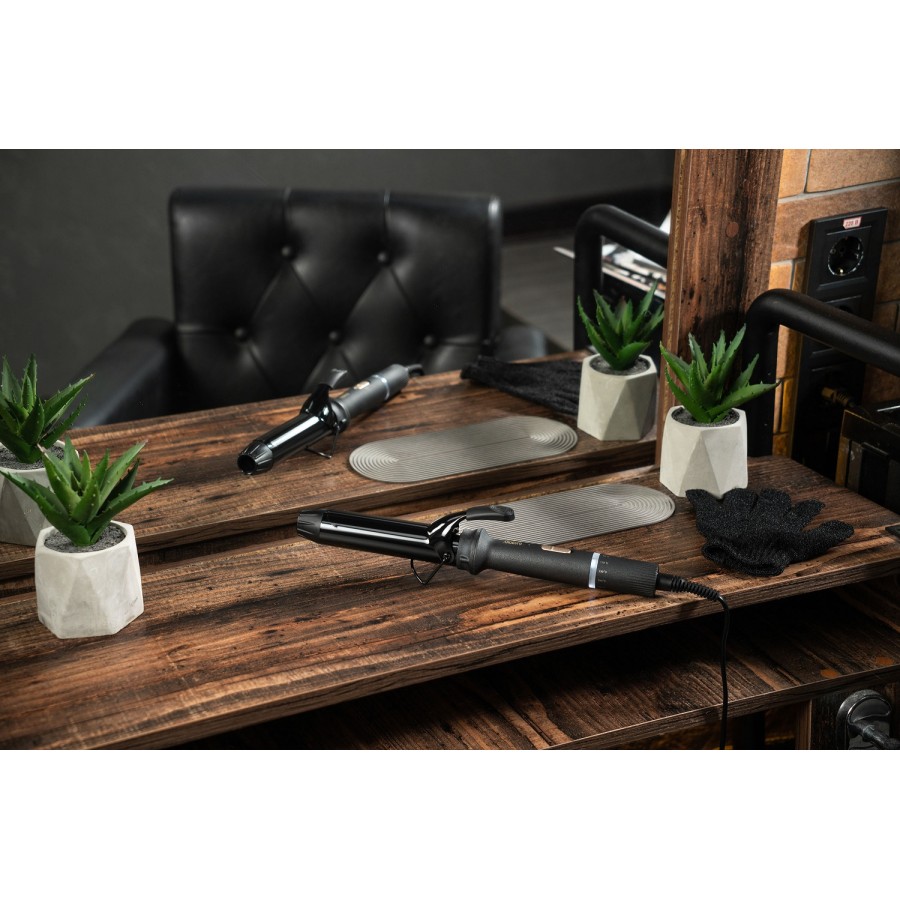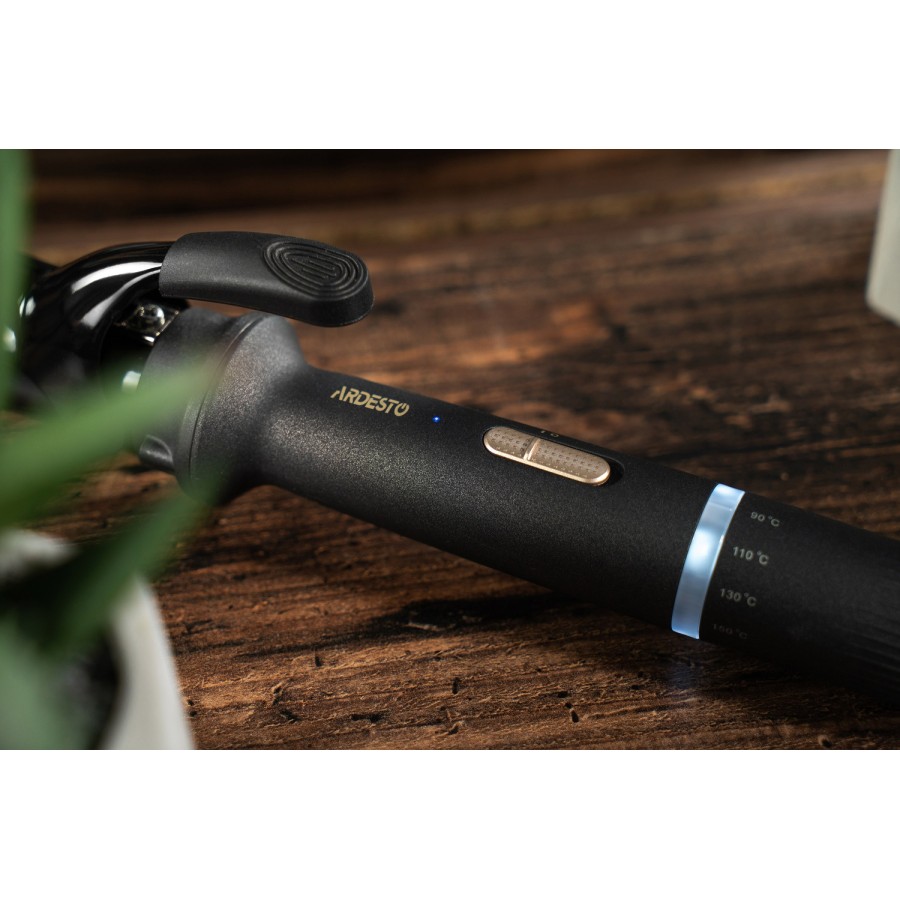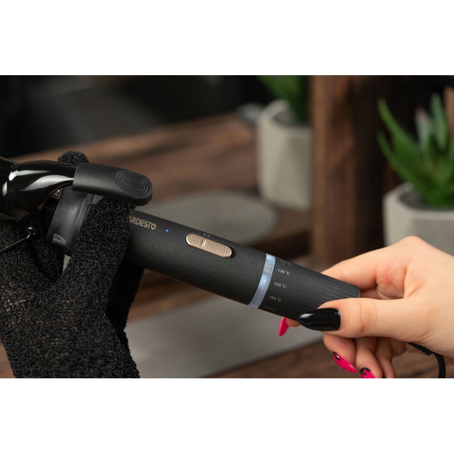 Потужність плойки 45 Вт дає змогу розігрівати її до 180 °С задля створення ефектних локонів. У разі потреби можна виставити меншу робочу температуру пристрою, адже передбачено 6 рівнів нагрівання: від 90 °С до максимуму. Шнур плойки здатний обертатися на 360°, тож під яким кутом ви б не працювали, він не створюватиме перешкод.