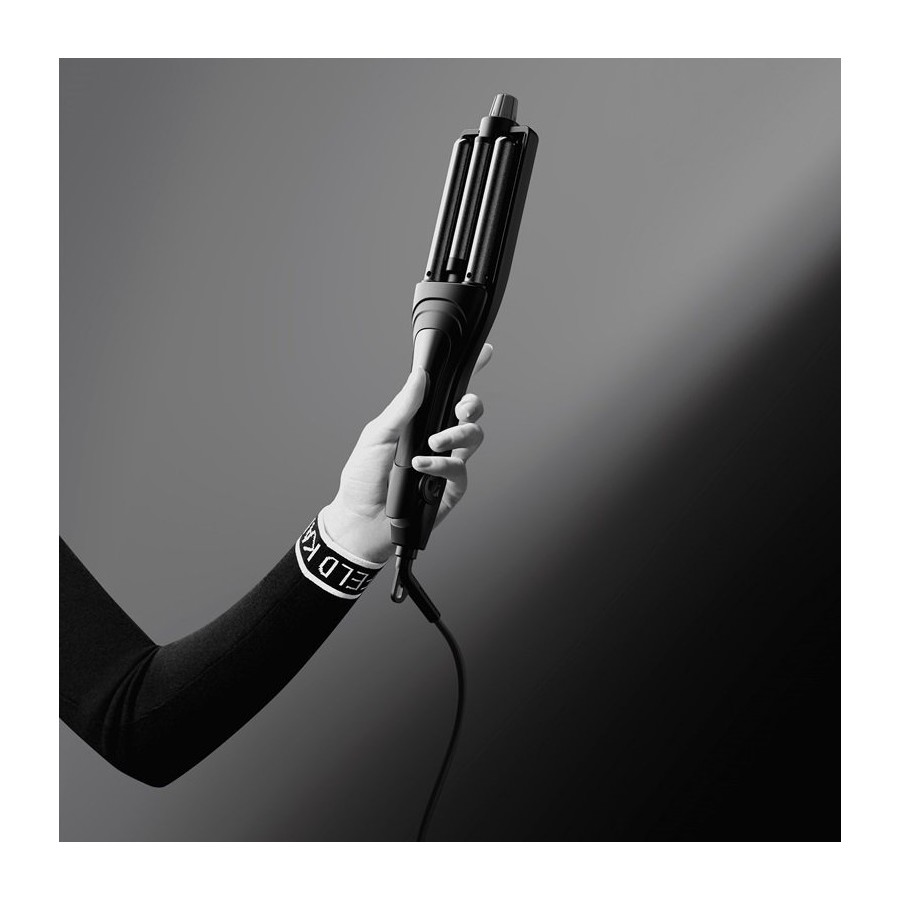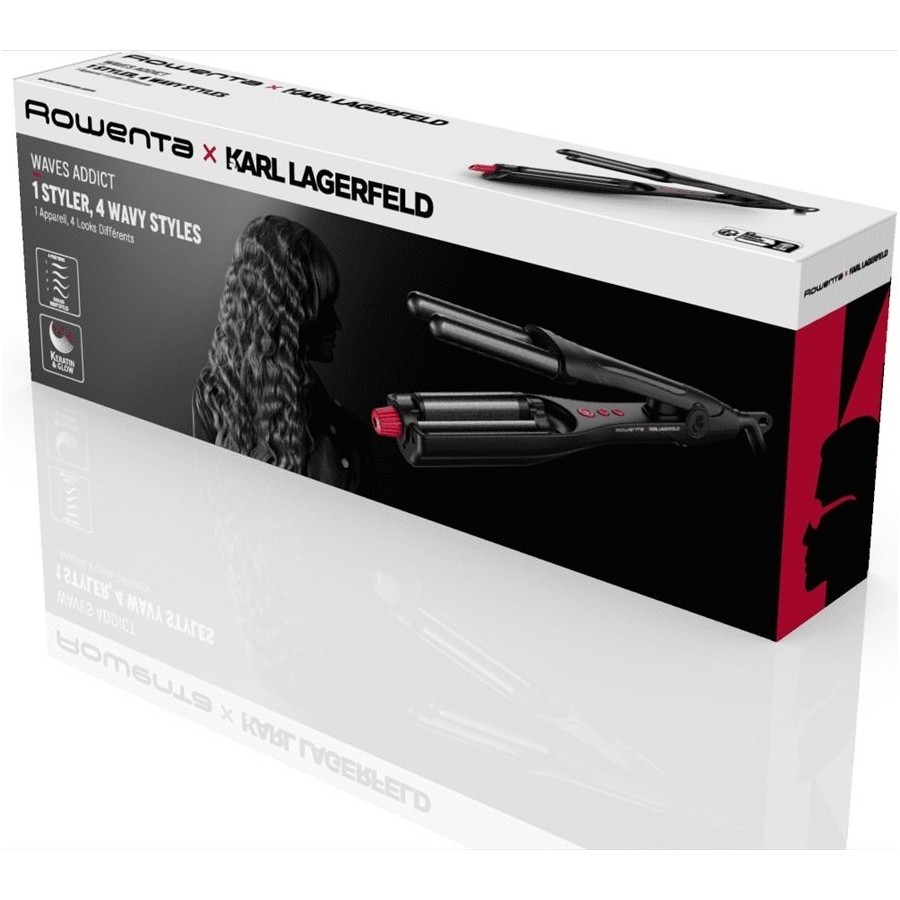 Стайлер Rowenta x KARL LAGERFELD Waves Addict Hair Waver пропонує чотири чудові варіанти для приголомшливого стилю, який ніколи не перестає вражати. Знайдіть свій ідеальний хвилястий вигляд із чотирма простими у використанні налаштуваннями для природних хвиль, пляжних хвиль, вільних хвиль або вишуканих та гламурних хвиль. Шість температур (до 210 ° C), регульованих залежно від типу волосся, у поєднанні з розширеними функціями для легкого укладання день за днем - і все це в модному ергономічному дизайні.
