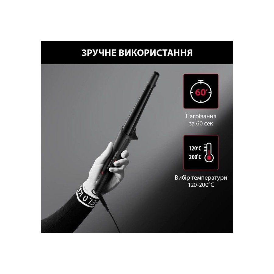 Плойка Rowenta x Karl Lagerfeld Conical Curler, конусна, 40Вт, 120-200С, турмалін, чорний (CF324LF0)