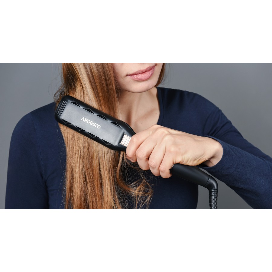 Запас потужності в 65 Вт і розумна система нагрівання легко впораються з різним типом волосся, а унікальна конструкція нагрівального елементу дозволить працювати як з вологими, так і з сухим волоссям. За допомогою плойки HS-612 можна створити зачіску з ефектом гофре і візуально збільшити об'єм волосся. Для дбайливого догляду за ослабленим волоссям передбачено три температурні режими - 110°C, 165°C, 215°C. Автоматичне вимкнення щітки розраховане на 60 хвилин.