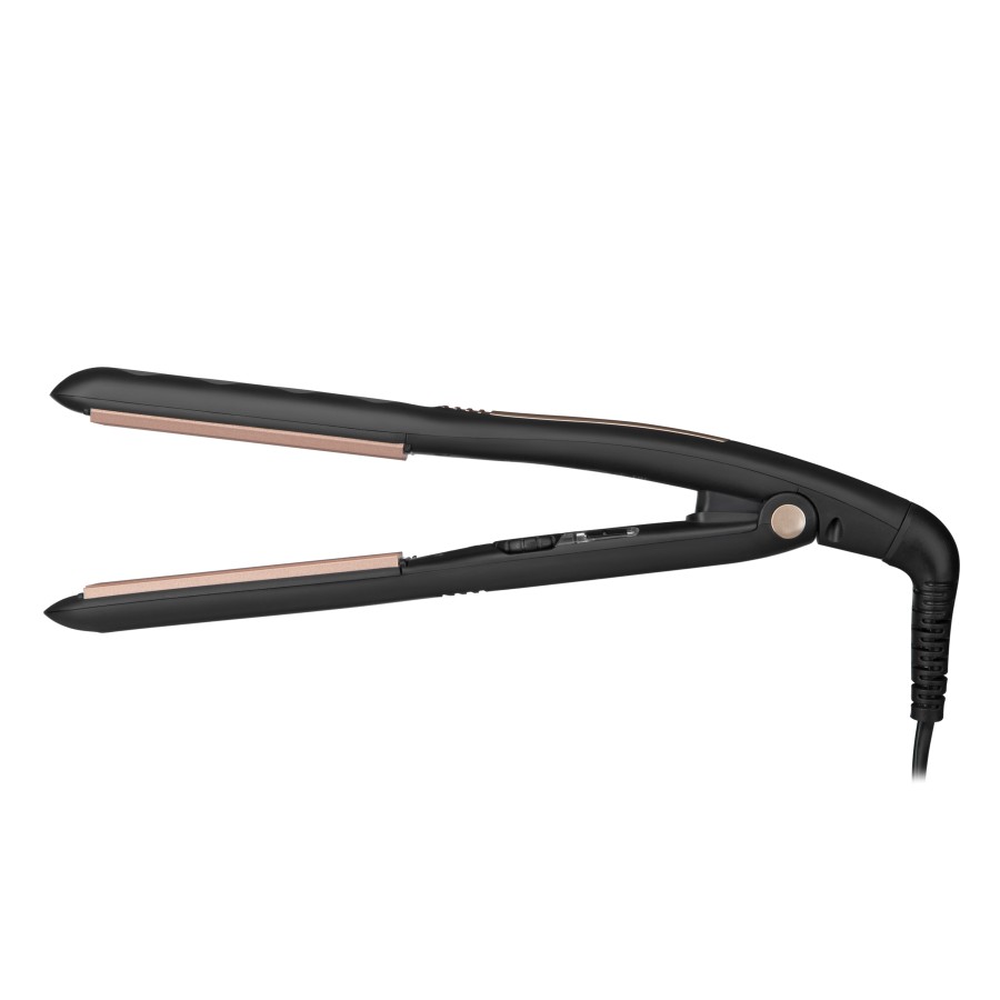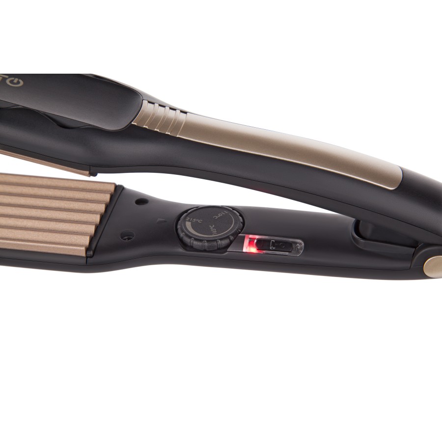 Плойка HSC-612 виконана в форм-факторі щипців. Ергономічна ручка з міцного матового полікарбонату чорного кольору відмінно поєднується з золотистим нагрівальним елементом, які разом створюють преміальну кольорову гамму. Для комфортного використання передбачений слайдер управління з індикацією режимів «сухі/вологі волосся» та коліщатко вибору температури. Кабель живлення підтримує оберт на 360°.