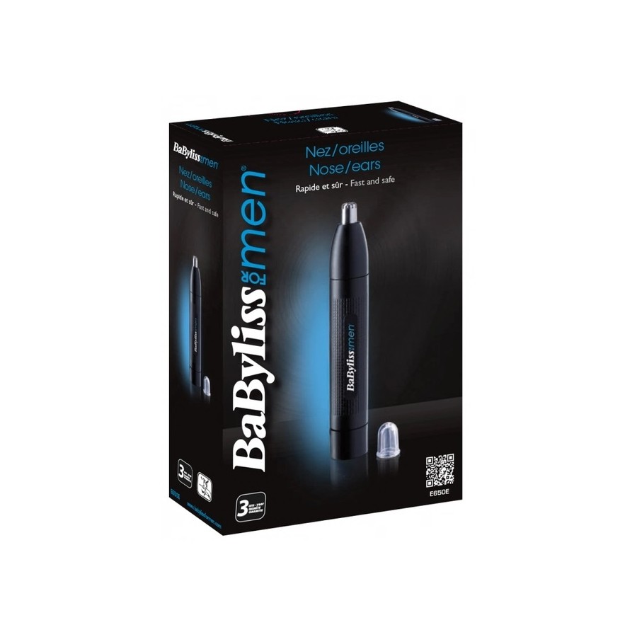 Тример для носа та вух BaByliss E650E дає змогу швидко й безпечно видалити небажані волоски. Завдяки своїй ергономічності тример зручно лягає в руку. Система циркулярного підстригання робить його практичним і безпечним у застосуванні.