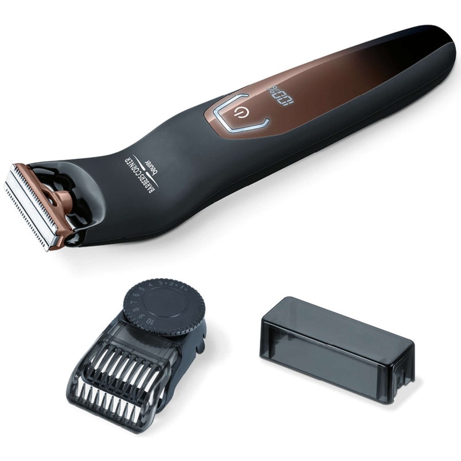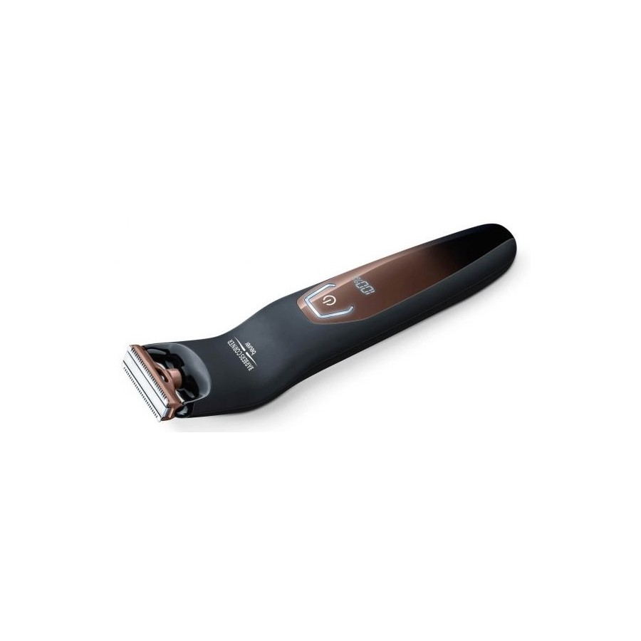 Тример для тіла Beurer HR 6000 — це універсальний прилад для видалення волосся. Гнучке лезо дає змогу застосовувати тример для всіх частин тіла, включно з обличчям. Комфортне використання завдяки високоякісній неіржавкій сталі, з якої зроблене двостороннє лезо. Поворотна насадка дає змогу підібрати 13 типів зрізання довжини, від 0,5 до 10 мм. Тример має стильний дизайн із хромованими вставками. Водостійку конструкцію — його можна використовувати для вологого стриження. Лезо бритви знімається, очищається під проточною водою.
