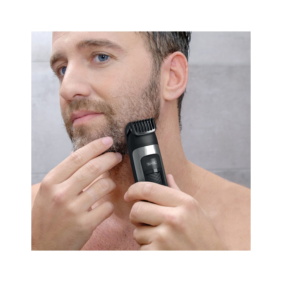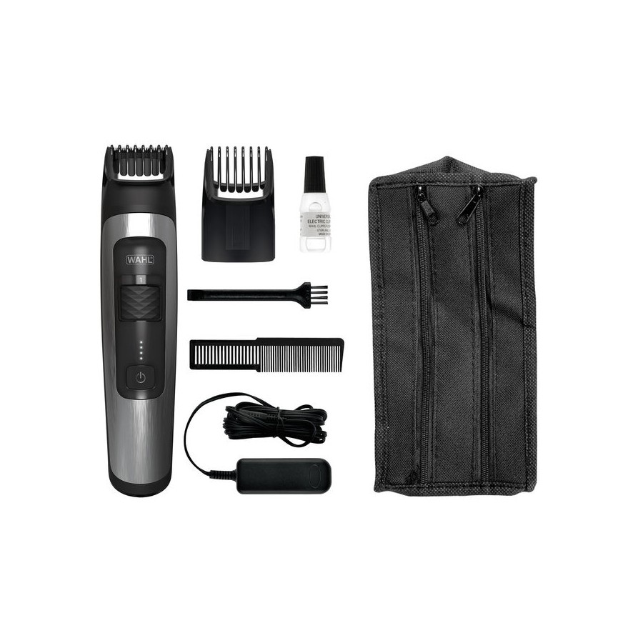 Тример WAHL Mustache&Beard, для бороди і вусів, ААx2, в комплекті, роторний мотор, насадок-4, гребінець, підставка, сталь, чорний (05606-508)