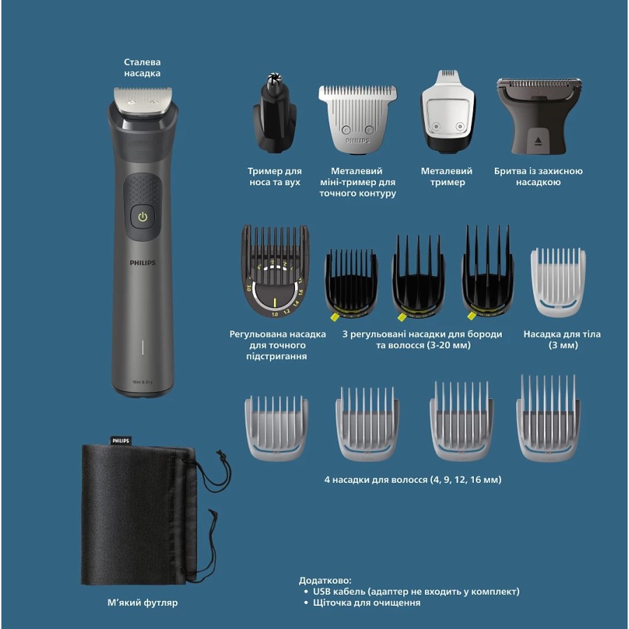 Цей універсальний тример є водонепроникним, що дозволяє використовувати його в душі та легко очищувати під краном.