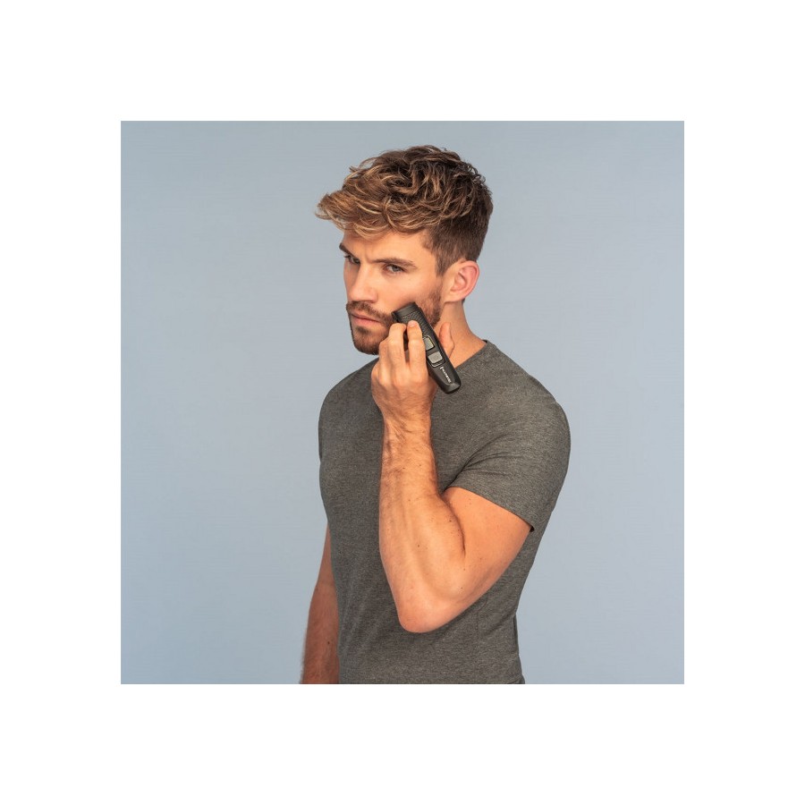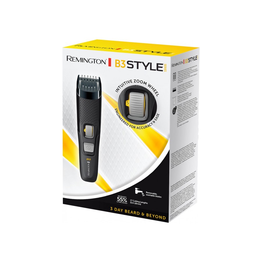 Час "Включити Своє Я" з новим тримером Remington Style Series B3. Інтуїтивне коліщатко регулювання довжини стрижки дозволяє вибрати з 17 точних варіантів установки довжини з легкістю і точністю. Комфортні леза, що самі заточуються, розроблені для гладкого ковзання і точних результатів стрижки.