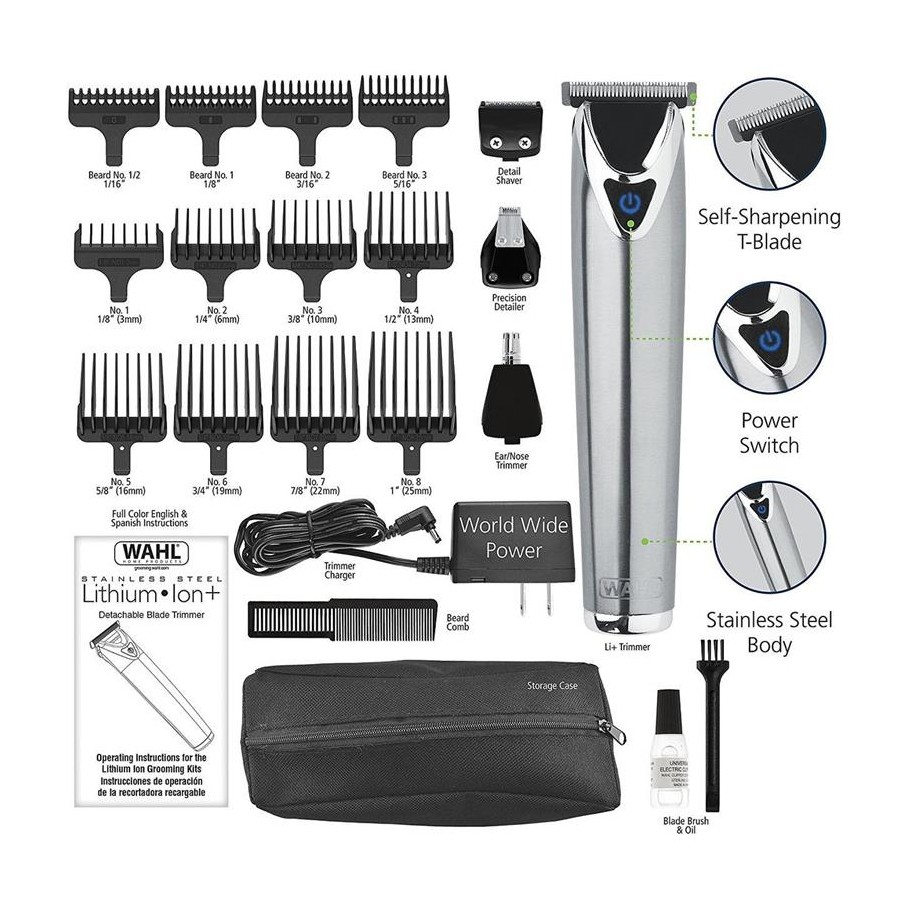З Wahl 9818-116 легко здійснити всебічний догляд за рослинністю на різних ділянках тіла. Пристрій комплектується насадкою для стрижки волосся з 6 рівнями зрізу (від 1,5 до 13 мм). Блок ножів з нержавіючої сталі дозволяє якісно опрацювати область шиї, навколо вух, лінію вусів і бороди. Для стрижки бороди є 3 насадки, за допомогою яких можна сформувати повну бороду, коротку і триденну щетину. У разі, коли необхідно зробити ідеально виголене обличчя, слід скористатися для гоління насадкою. Завдяки спеціальній обертається насадці можна безпечно і швидко позбутися від небажаних волосків в носі і вухах.