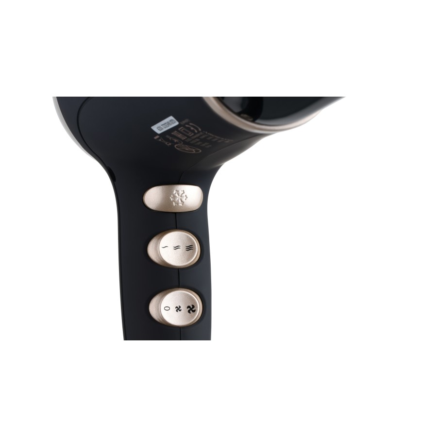 Максимальна потужність пристрою - 2200 Вт, передбачений захист від перегріву та підтримуються дві швидкості з трьома температурними режимами, які можна вибрати за допомогою клавіш управління на ручці. Знімна насадка-концентратор покращує розподіл повітряного потоку, а функція Cool Shot забезпечує більш щадну сушку ослабленого волосся холодним повітрям.
