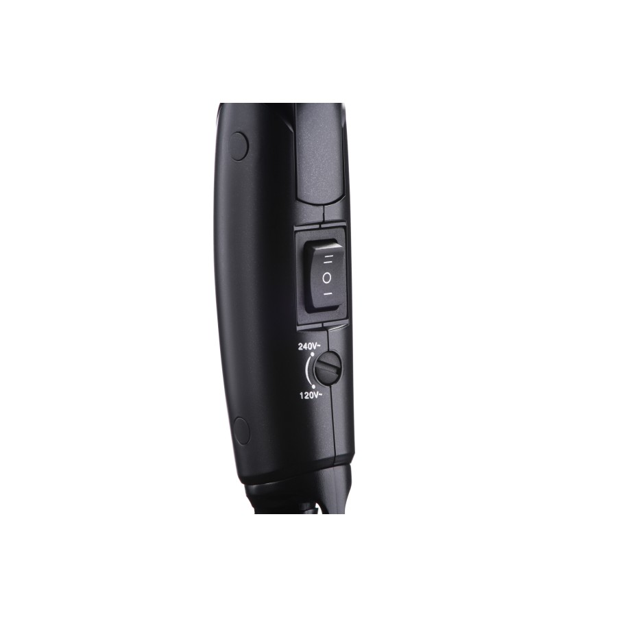 Потужність пристрою – 1200 Вт, підтримуються два режими роботи, які можна вибрати за допомогою клавіші управління на ручці. Фен отримав захист від перегріву, а знімна насадка-концентратор забезпечує ефективний розподіл повітряного потоку для більш швидкої сушки волосся. Фен підтримує роботу в двох режимах напруги 110 В/220 В.
