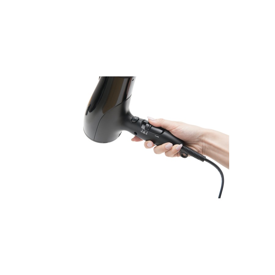 Цей фен має ергономічний дизайн, легкий у використанні завдяки комфортній ручці та знімному фільтру для зручного очищення. Його потужність і функції роблять його придатним як для домашнього використання, так і для подорожей завдяки продуманій формі та компактності.