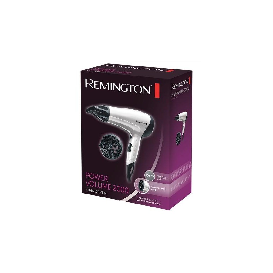 Фен Remington Power Volume 2000, 2000Вт, 3 режими, дифузор,турмалінова іоніз-я, хол. обдув, білий (D3015)