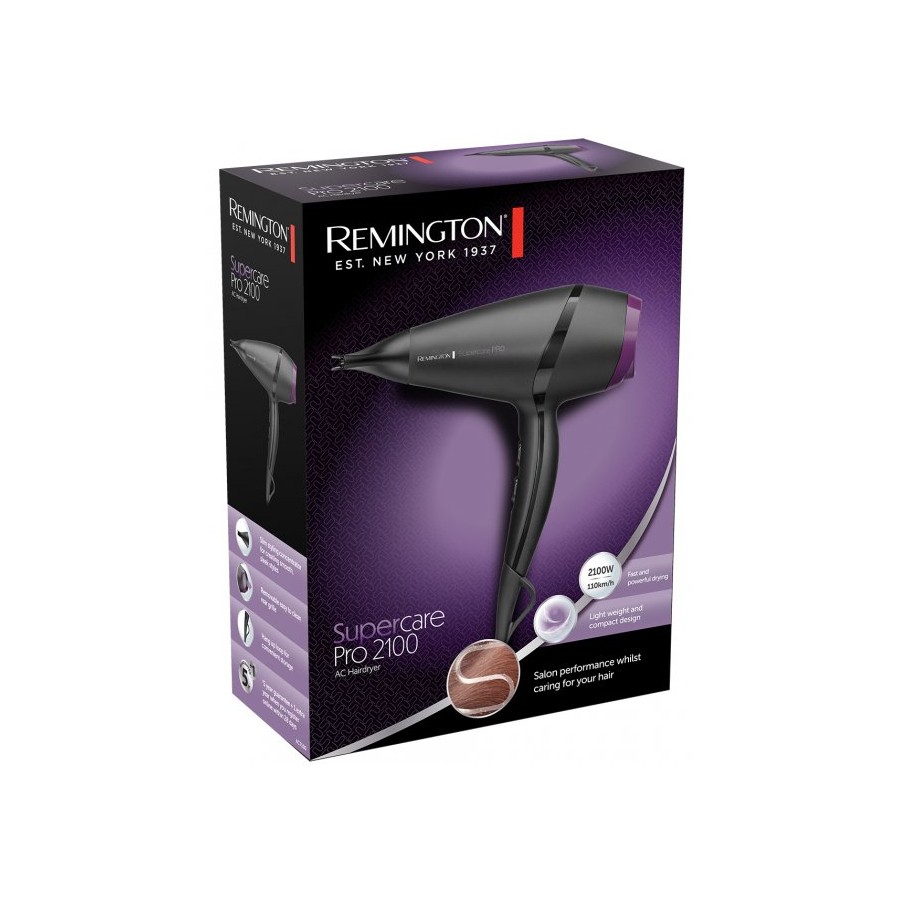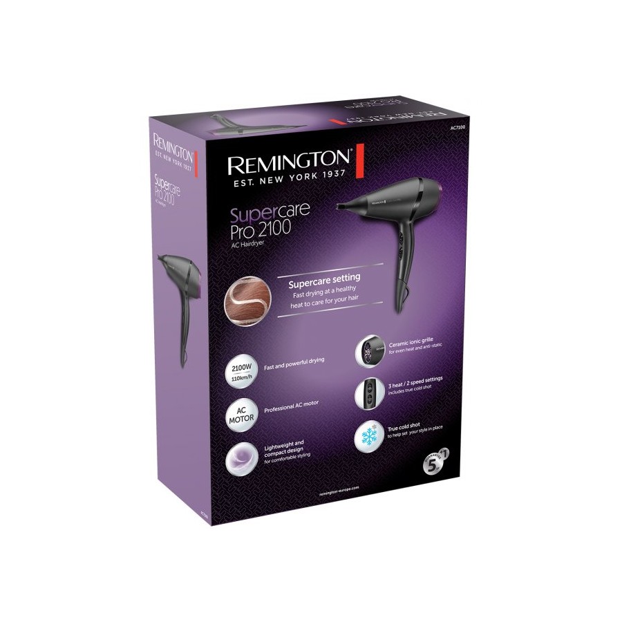 Фен Remington Supercare PRO 2100 AC motor, 2100Вт, 3 режими, іоніз-я, хол. обдув, чорний (AC7100)