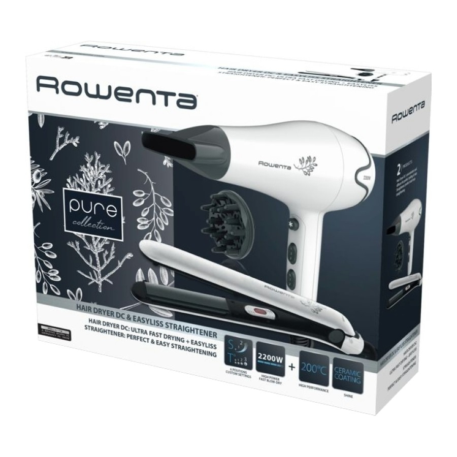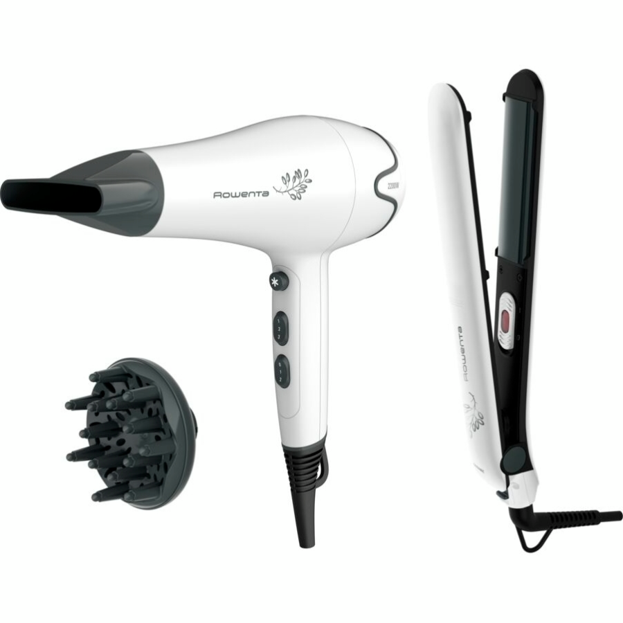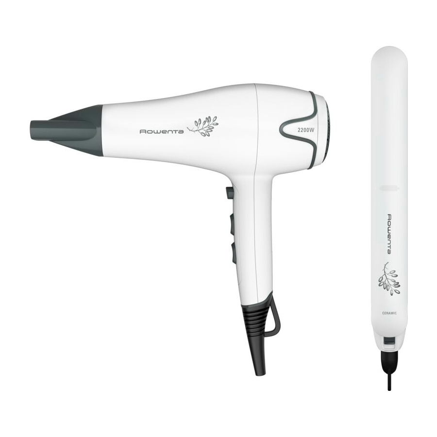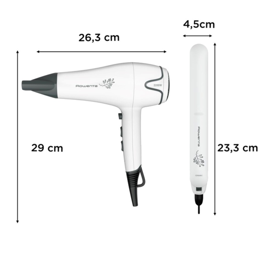 Фен потужністю 2200 Вт з високошвидкісним потоком повітря для швидкого та легкого сушіння, а також простий у використанні випрямляч для волосся з монотемпературним режимом 200°C.