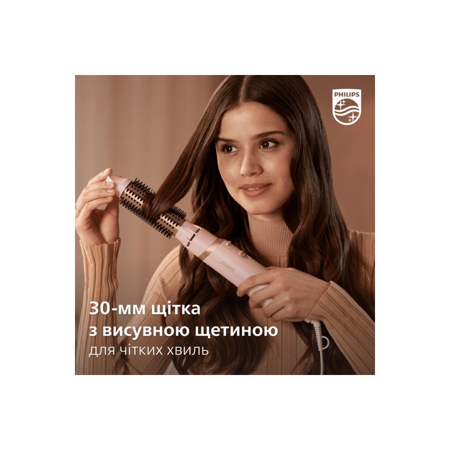 30-мм щітку з висувною щетиною створено для легкого моделювання. Поверніть кінчик щітки і висуньте її для чітких хвиль.