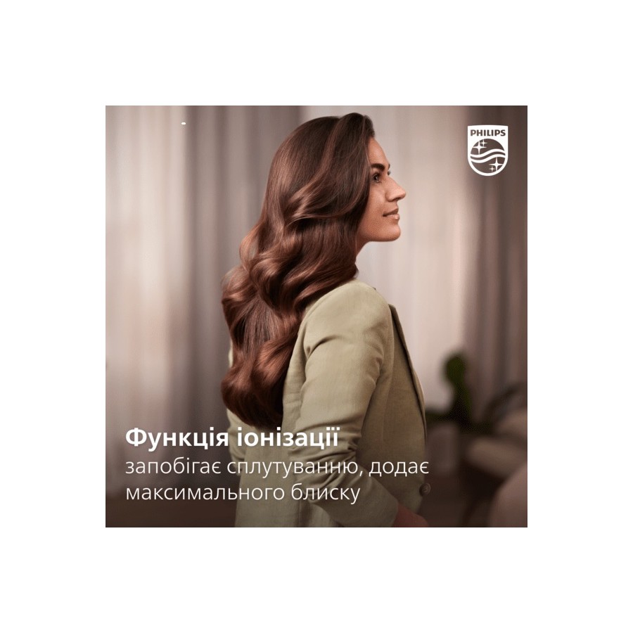 Функція іонізації дозволяє сушити волосся без електростатики. Створюється потік негативно заряджених іонів, що зменшує скуйовдження, вирівнює кутикули та підсилює блиск волосся. Результат – блискуче, слухняне волосся з найкращим виглядом.