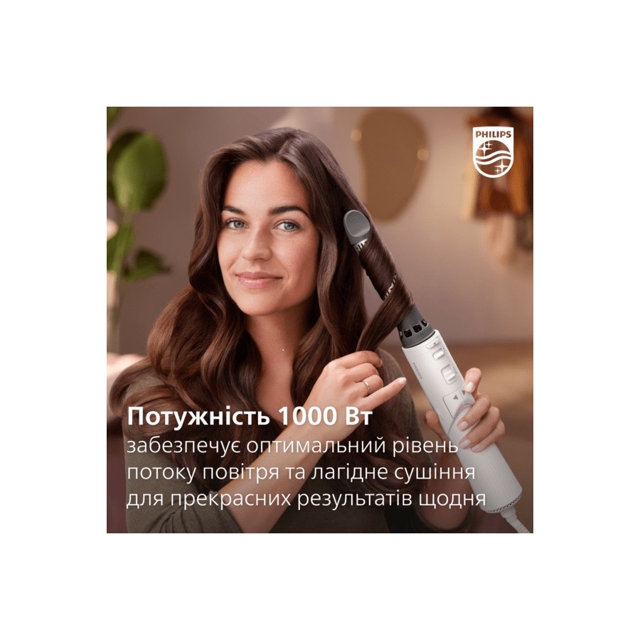 Ця фен-щітка 1000 Вт забезпечує оптимальний рівень потоку повітря та лагідне сушіння для прекрасних результатів щодня.