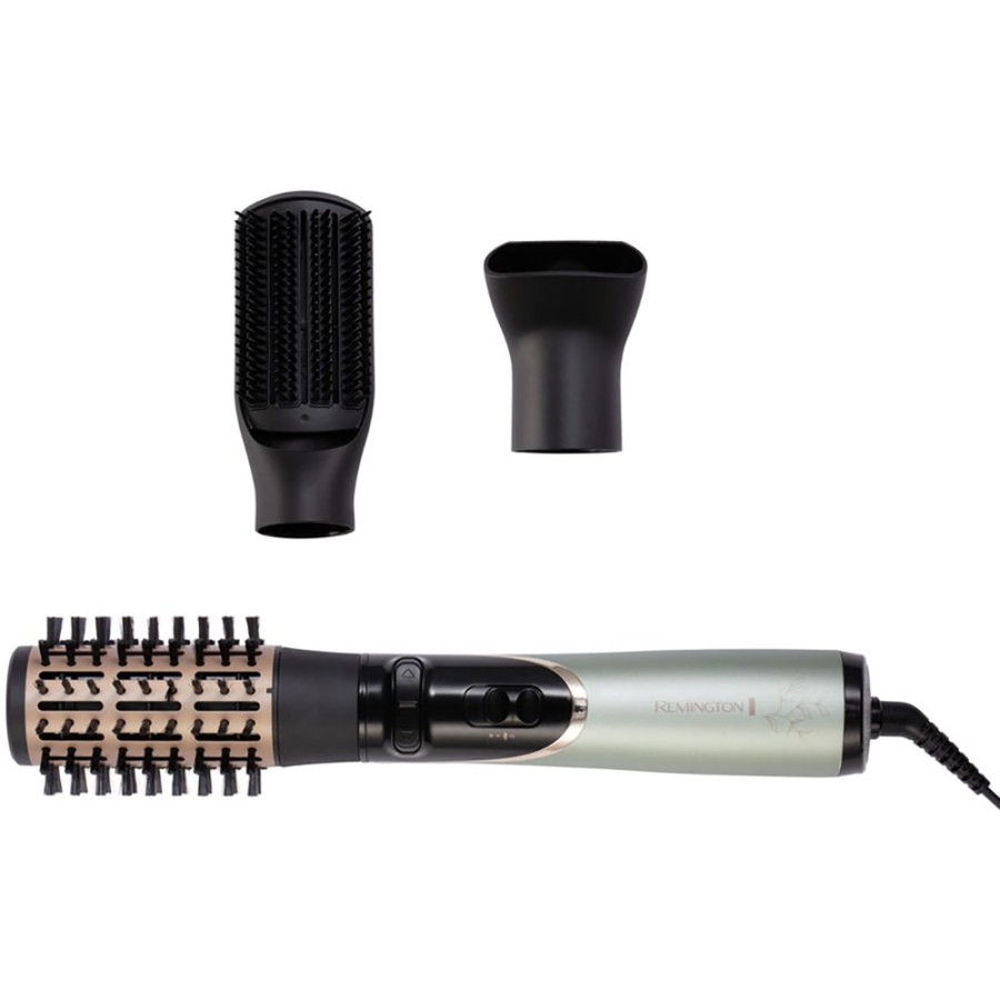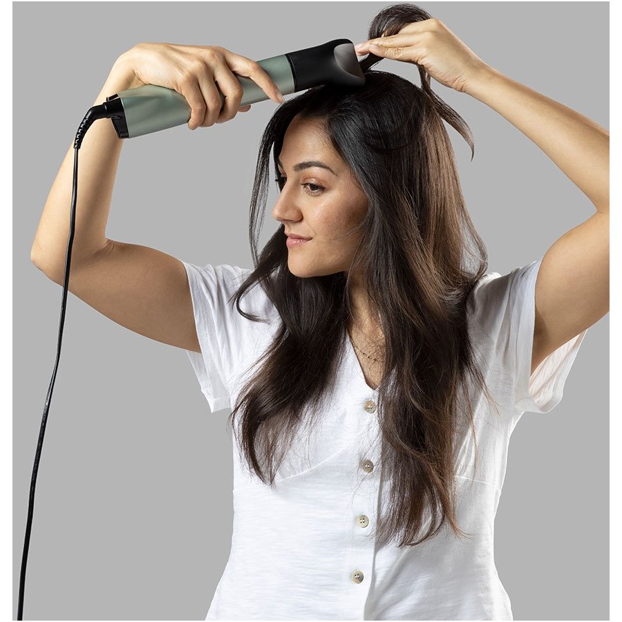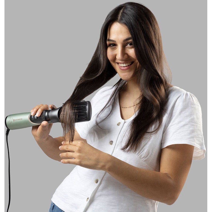 50-міліметрова щітка гарячого повітря, що обертається, з м'якою щетиною надає волоссю форму і об'єм і допомагає створити чіткі поліровані коніровані. Миттєво змінюйте напрямок обертання за допомогою простий у використанні кнопки. Стайлер обертається в обох напрямках, тому ви можете створювати зачіски на обох сторонах голови, не змінюючи насадок.