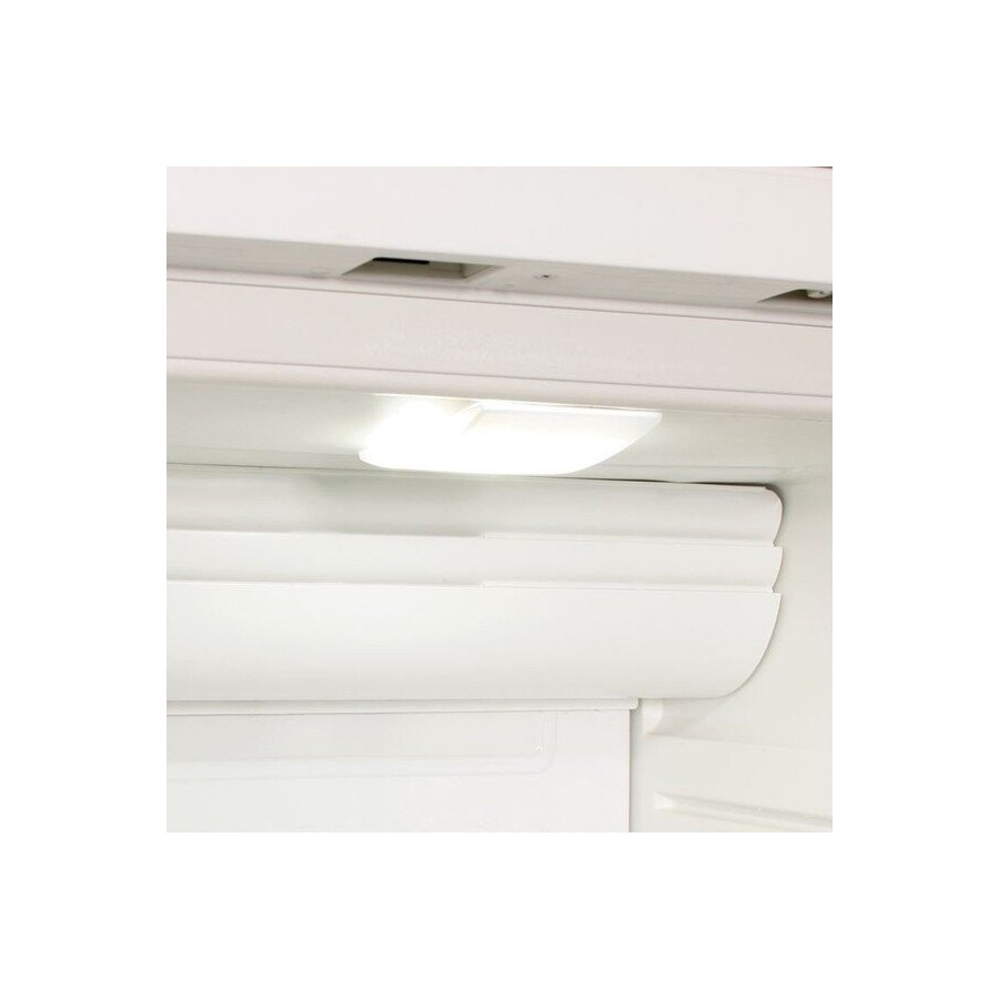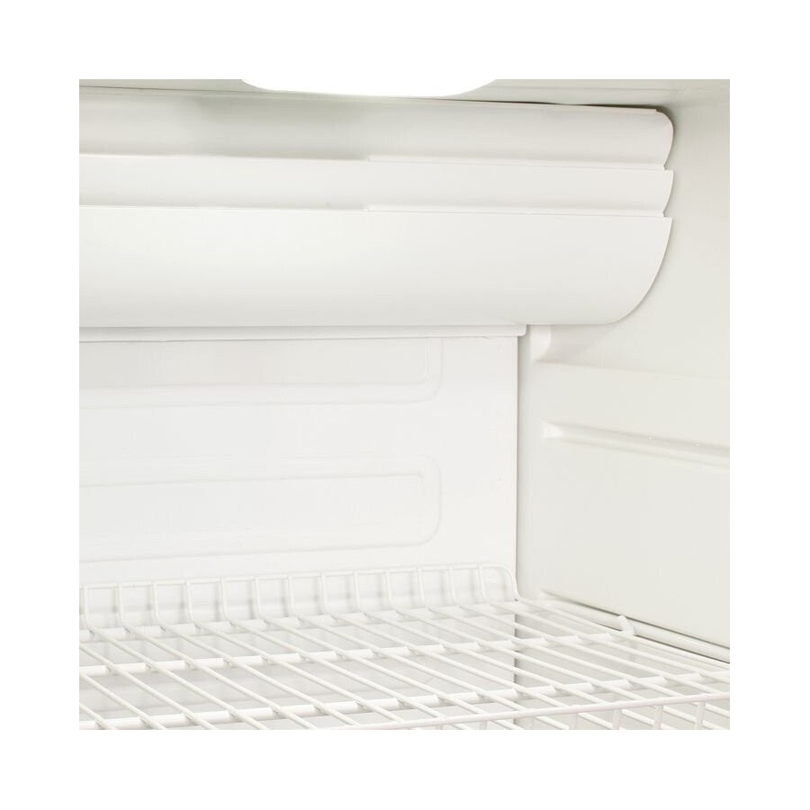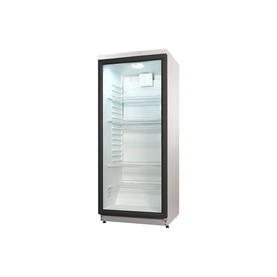 Холодильник працює досить тихо, рівень шуму складає 43 дБ. У даній моделі немає морозильного відділення. Двері холодильника виготовлені зі скла з алюмінієвою рамою. Максимально допустиме завантаження однієї полиці складає 40 кг.