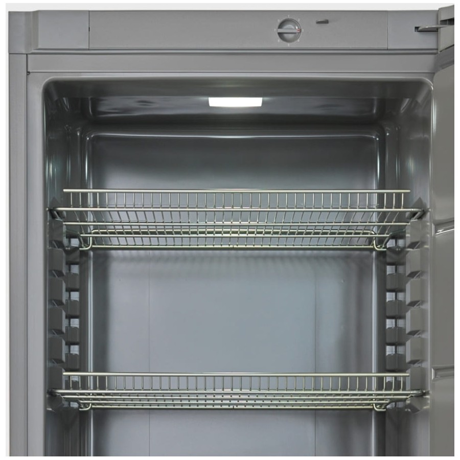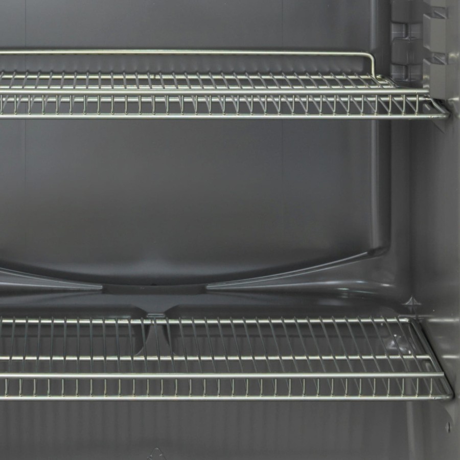 Статична система охолодження забезпечить енергоефективне охолодження та безперебійну роботу. Продукти всередині камери будуть охолоджуватися від - 2°C до +8°C. Це дає змогу зберігати величезну кількість різноманітних продуктів харчування: картоплю, овочі, готове до вживання м'ясо, сир, консерви, всілякі напої. Усі їх буде легко і зручно завантажити на міцні регульовані дротяні полиці, що регулюються. Кожна полиця витримує вагу до 50 кг. Тому продукти можна розміщувати разом з упаковкою та коробками.