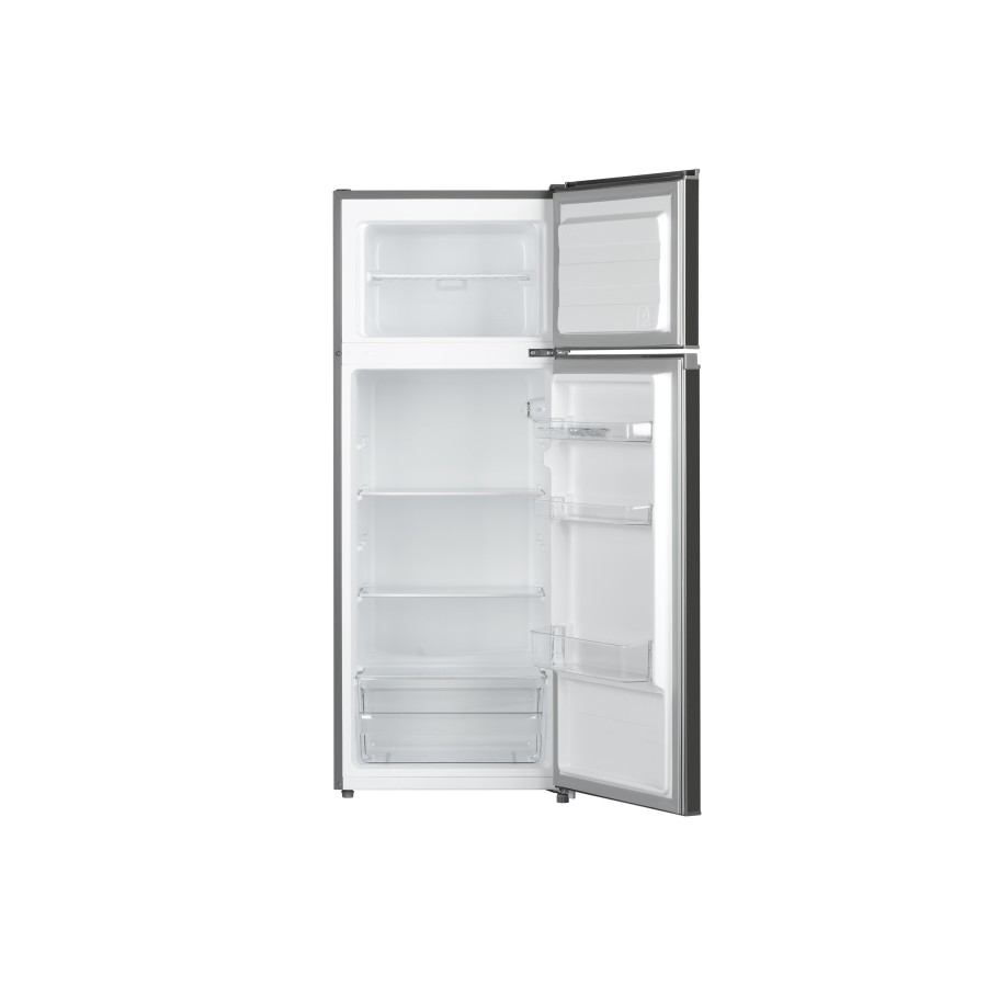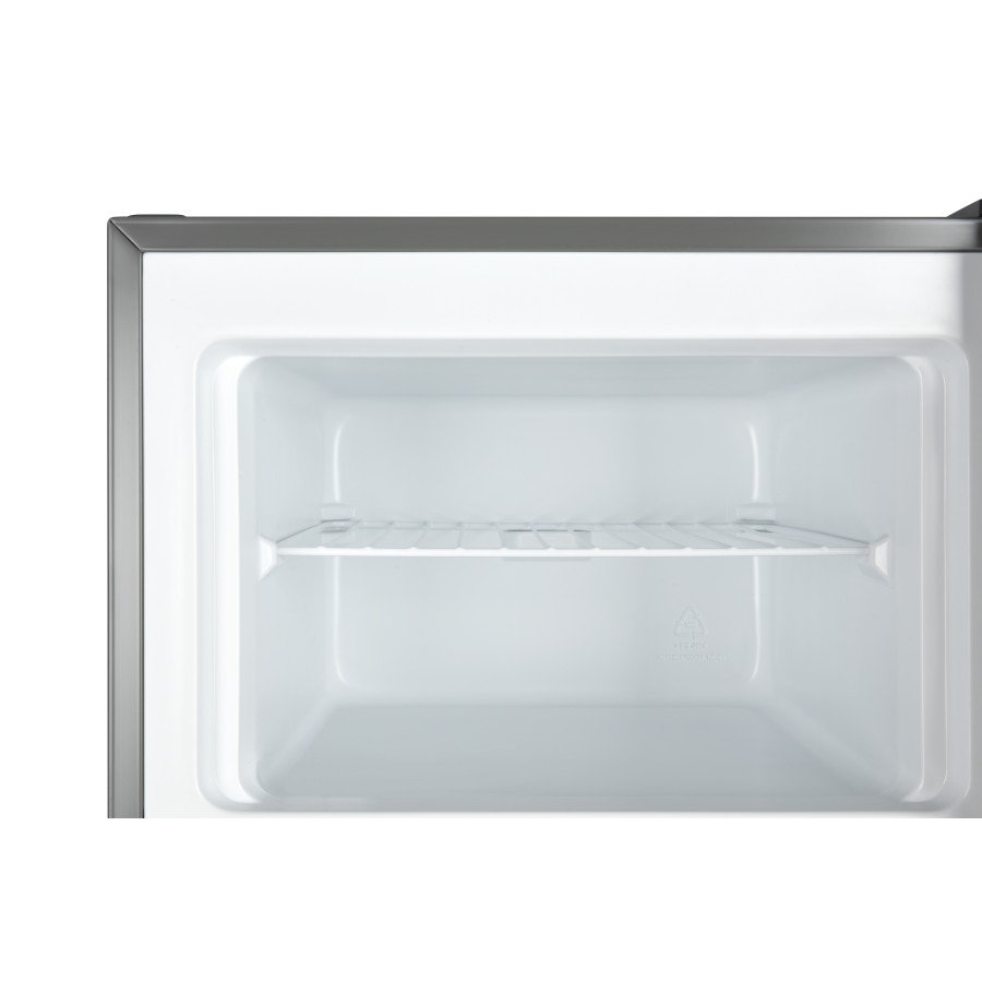 В холодильному відсіку є три основні полиці і три полиці на дверях, а також фреш-зона для зберігання делікатних продуктів, овочів та фруктів. Внутрішнього простору вистачить для достатньої кількості свіжих продуктів, баночок, напоїв та заморозки. У морозильній камері, яка розташована зверху, встановлена полиця-решітка, яка розділяю камеру навпіл.