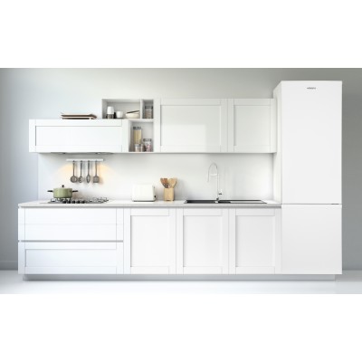 Місткий, але не масивний за розмірами холодильник можна розмістити на будь-якій кухні, у заміському будинку чи на дачі. Завдяки можливості перенавішування дверей для нього легко підібрати зручне місце. Рівень шуму холодильника – лише 39 дБ, тож він не створюватиме дискомфорту. Розподілення потоків повітря системою Low Frost запобігає утворенню намерзання на стінках.