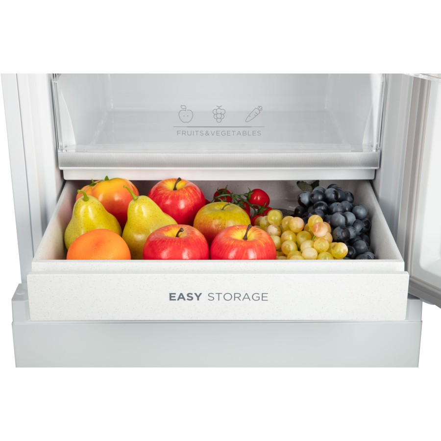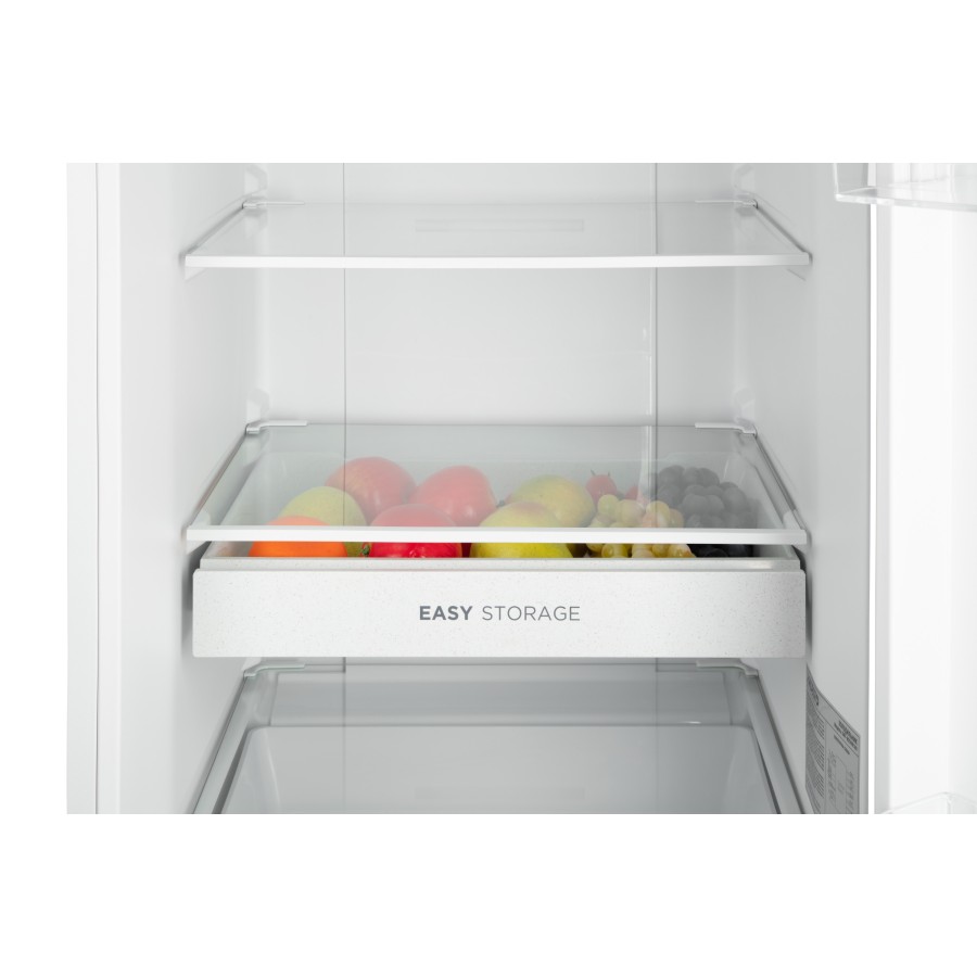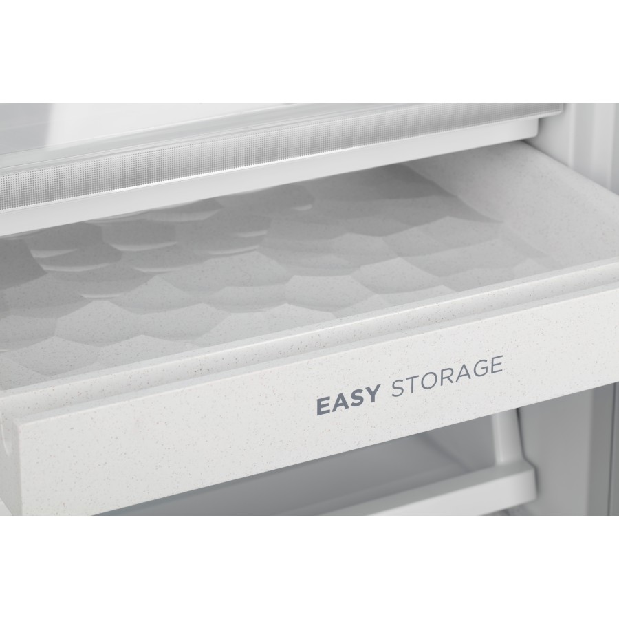 Користувач легко налаштує холодильну камеру під власні потреби, регулюючи відстань між поличками та переміщуючи спеціальну висувну шухляду Easy Storage. Якщо розташувати її під ящиками для овочів та фруктів, то вона матиме нижчу температуру, і в ній протягом певного часу можна буде зберігати м’ясо та яйця. Якщо ж встановити шухляду Easy Storage під другою поличкою згори, в багатофункціональному просторі звільниться додаткове місце, зокрема для напоїв.