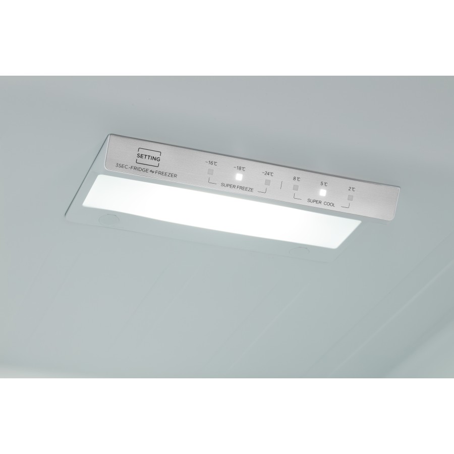 LED-підсвічування, можливість перенавішування дверей і система їхнього автоматичного доведення, вбудовані ручки, внутрішня електронна панель керування тощо – це ті особливості холодильника, що роблять користування ним зручним і простим. Він не створює незручностей на кухні, адже рівень шуму від нього не перевищує 41 дБ. А перший клас захисту від ураження струмом у комплексі з якісними надійними матеріалами гарантують безпечність і довговічність пристрою.