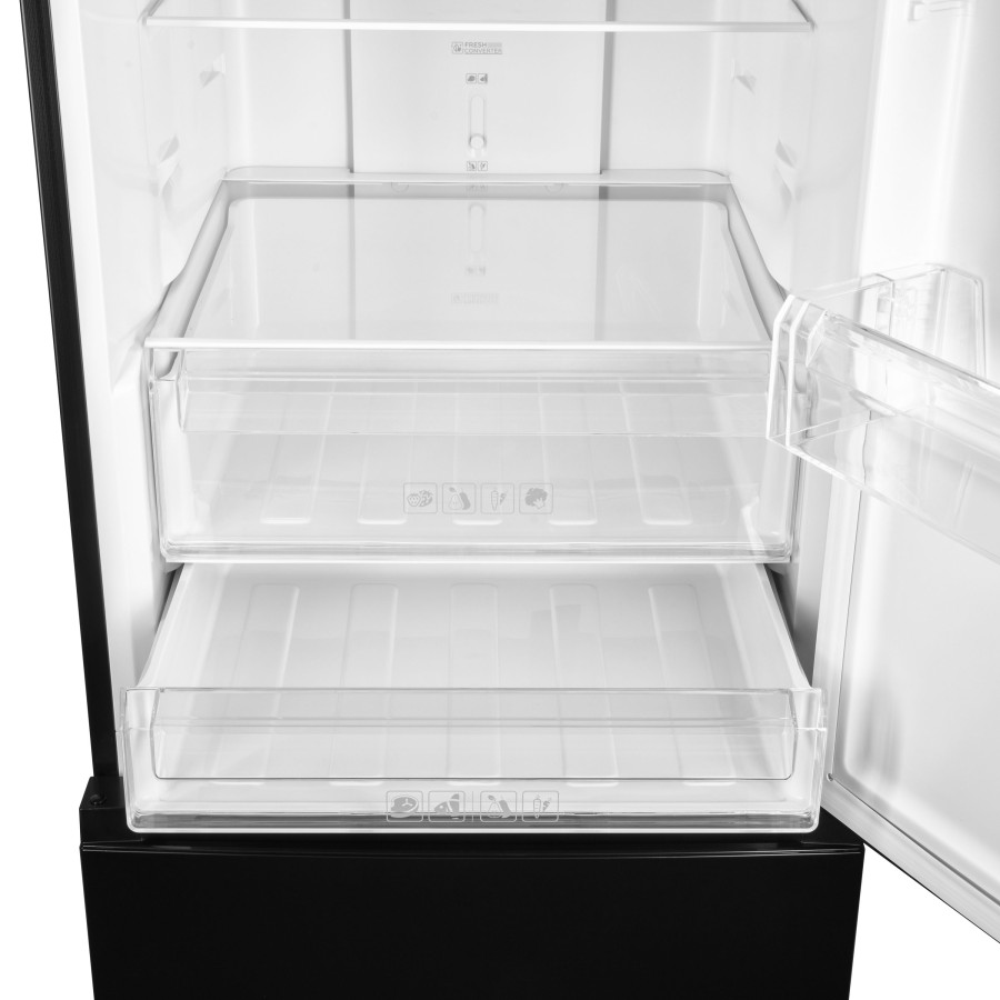 У холодильнику DNF-H342B194 завдяки ефективній системі охолодження забезпечено оптимальну температуру (відділення для зберігання свіжих продуктів: +2...+8°С; відділення марковане чотирма зірочками: -14...-22°С) та циркуляцію повітря для збереження свіжості продуктів. Загальний об’єм холодильника чорного кольору становить 342 л. У внутрішньому просторі моделі передбачено освітлення у потрібному місці.