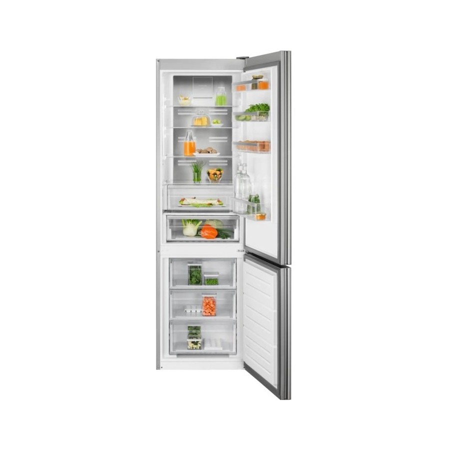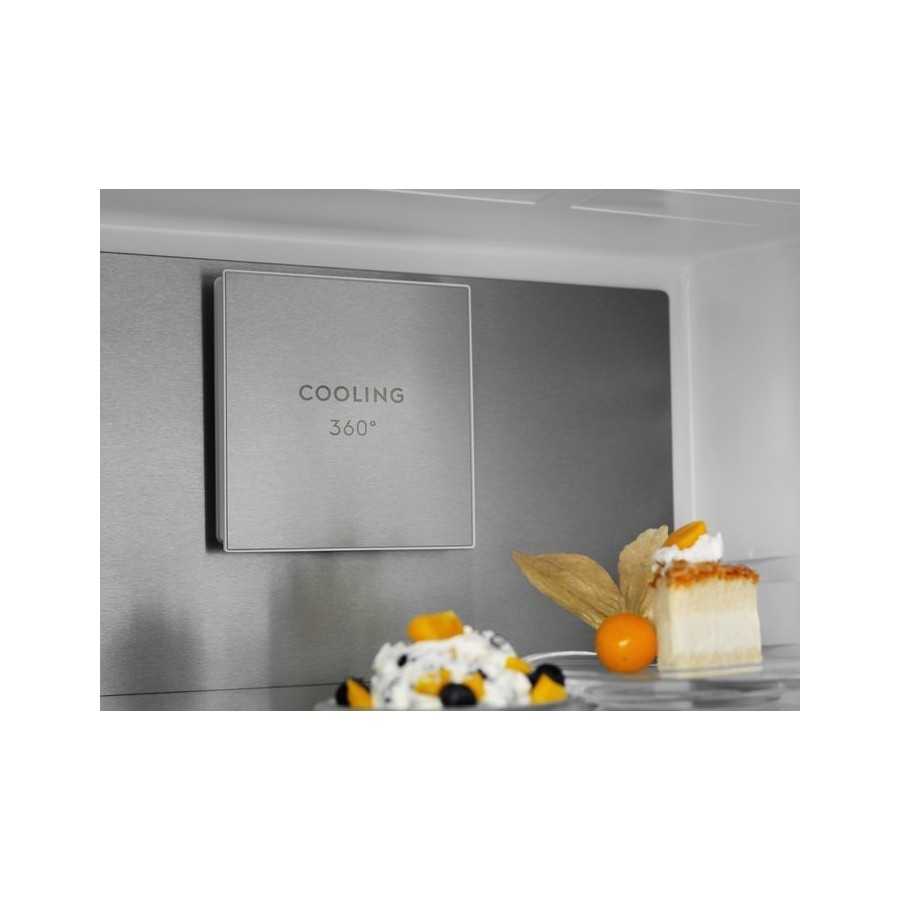 Холодильник Cooling 360° - це циркуляція повітря по всьому об'єму. Оптимальний розподіл вентиляційних отворів забезпечують охолодження у кожному куточку. Задня стінка із справжньої нержавіючої сталі покращує дизайн та функціональність, швидко відновлюючи температуру після відчинення дверцят. Здвоєна система охолодження TwinTech® No Frost захистить інгредієнти від втрати вологи. Інверторний компресор. Автоматичне розморожування морозильної камери. Автоматичне розморожування холодильного відділення. Функція Action Cool дозволяє швидко досягати потрібної температури охолодження. Action Freeze забезпечує швидке заморожування продуктів із збереженням смаку та вітамінів. Незалежне регулювання температури в холодильному та морозильному відділеннях.