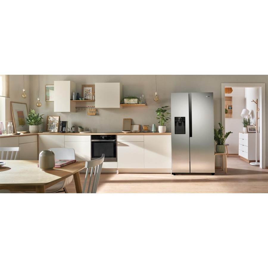Практичність і багато простору. Продуманий дизайн внутрішнього простору дає можливість зберігати більшу кількість продуктів і рідше ходити за покупками. Їжу можна зручно розмістити на скляних полицях, у великих шухлядах або контейнерах із внутрішнього боку дверцят. Великий і чіткий світлодіодний дисплей забезпечує миттєве керування налаштуваннями температури. Функції, як-от FastFreeze і режим «Відпустка», можна ввімкнути одним дотиком. А в разі раптового підвищення температури вбудований сигнал одразу попередить користувача.