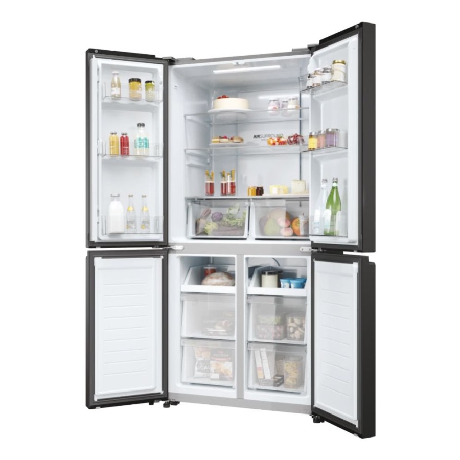 Завдяки технології Haier Air Surround Fresher Tech холодне повітря м'яко обтікає всю камеру холодильника. Завдяки спеціальним боковим отворам, ця система рівномірно розподіляє холодне повітря по всій камері холодильника, таким чином уникаючи прямого потоку на продукти та не спричиняючи їх висихання. Ось чому Haier Air Surround зберігає смак, консистенцію та соковитість їжі до 99%* після 7 днів, як у 1 день.