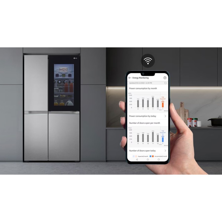 Контролюйте ваш холодильник з телефону або планшета. Функція Wi-Fi забезпечить ще більшу зручність використання. Холодильник з Wi-Fi і активацією ThinQ дозволяє контролювати роботу холодильника навіть коли ви не перебуваєте вдома.