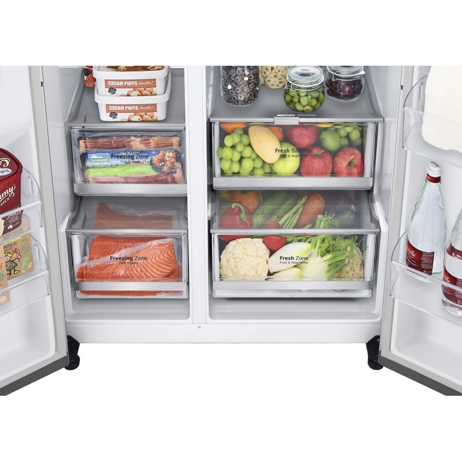 В рамках технології Hygiene Fresh+ від LG використовується 5-етапний фільтр, що усуває більшість причин псування їжі: пил, грибки, кислий, лужний запах та бактерії. Система усуває до 99,9% містяться в повітрі речовин, які забруднюють їжу, і очищає повітря в холодильнику, подовжуючи термін зберігання продуктів.