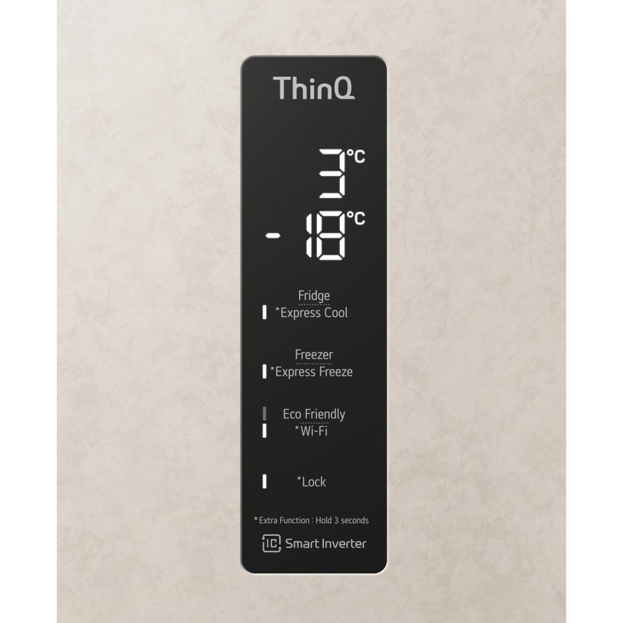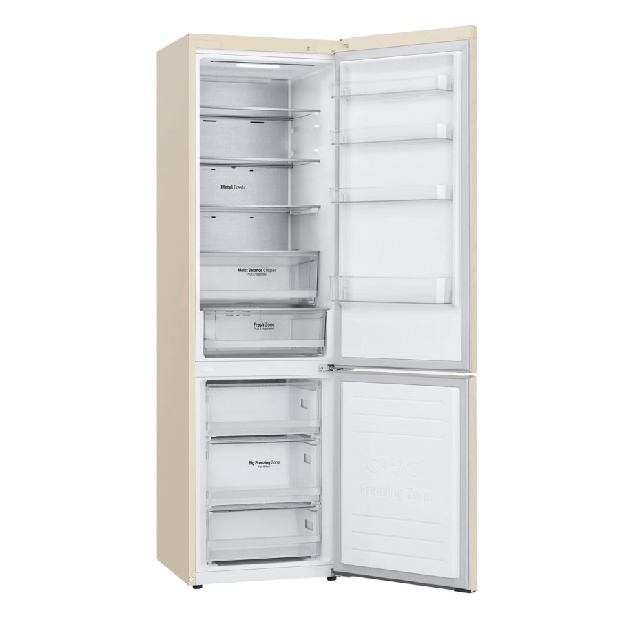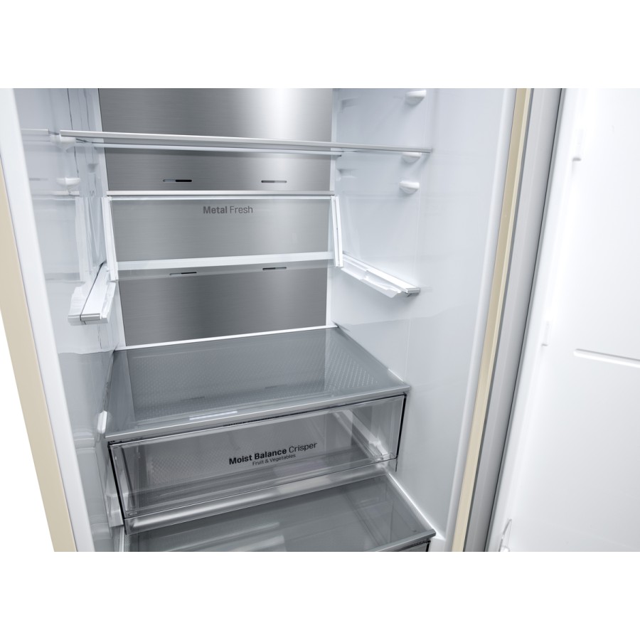 Холодильник LG з нижн. мороз., 203x60х68, холод.відд.-277л, мороз.відд.-107л, 2дв., А++, NF, інв., диспл зовн., зона св-ті, Metal Fresh, бежевий (GC-B