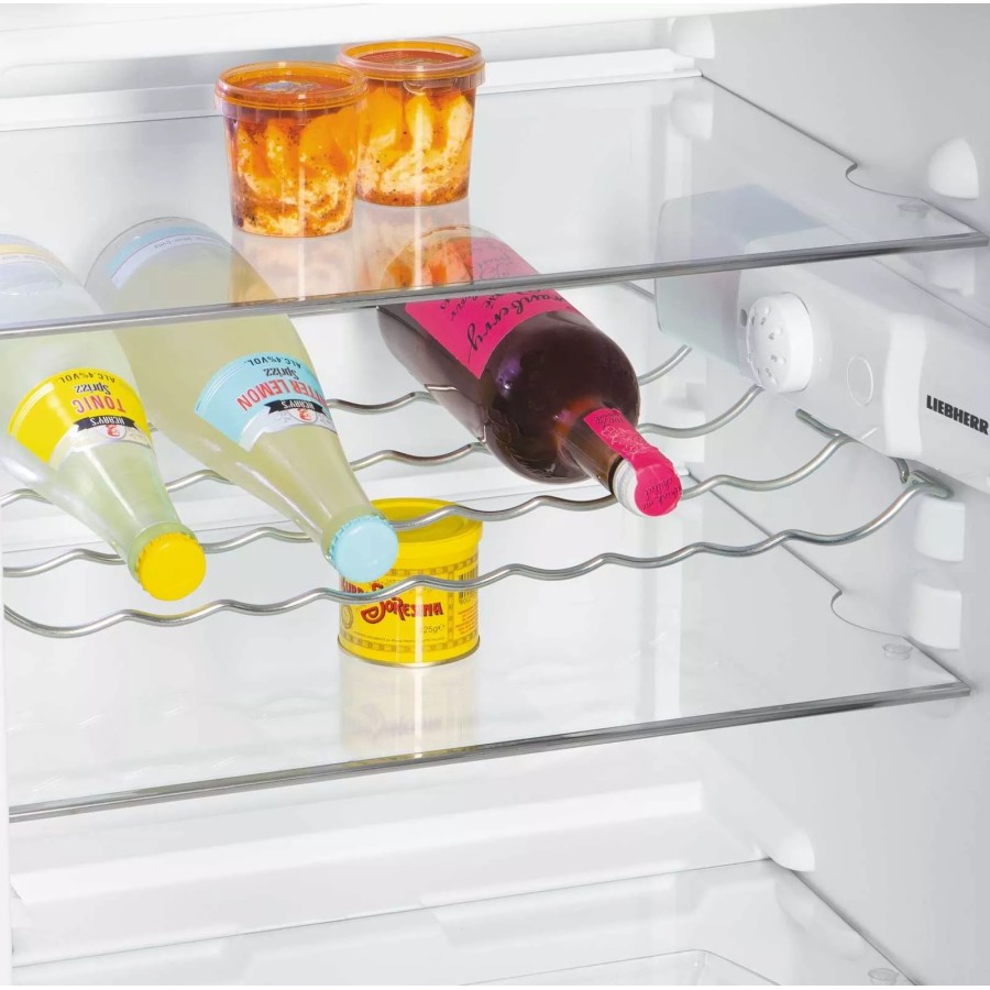 Красивим і практичним рішення для зберігання напоїв є полиця для пляшок. На ній можна зберігати пляшки для економії місця.