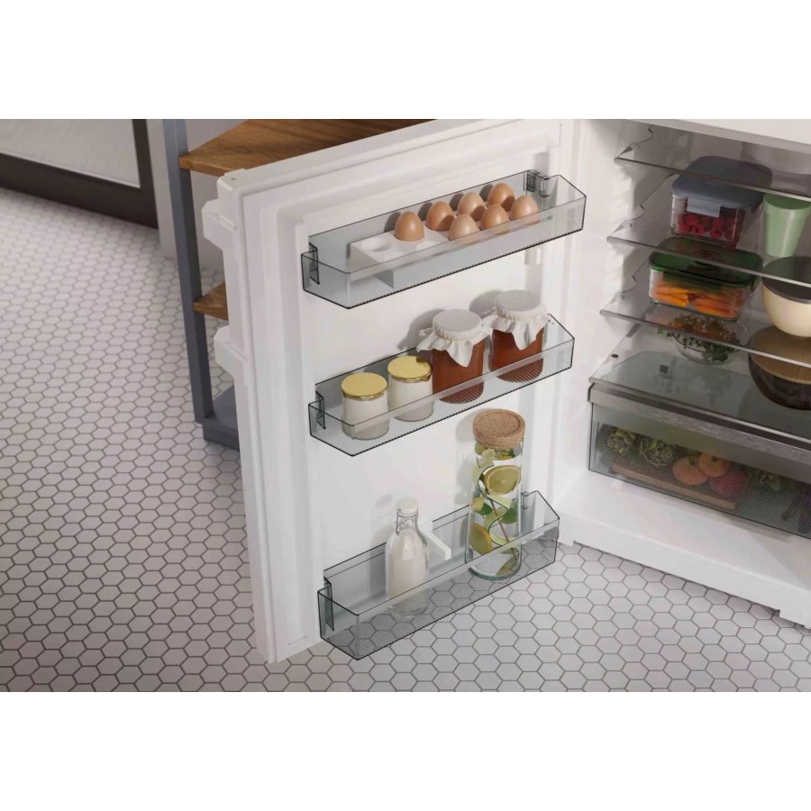 Оригінальність і функціональність: ергономічне розташування заглибленої ручки, яка має вертикальне положення, дає змогу зручно й легко відчиняти холодильник. Крім того, завдяки сучасному й лаконічному дизайну холодильник ідеально вписується в концепцію кухні без ручок.
