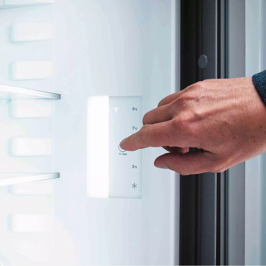 Дотиком пальця ви можете задати температуру в своєму Liebherr на рівні 3, 5, 7 або 9°С за допомогою функції TouchControl. Просте й ефективне рішення – стильну кнопку вбудовано у внутрішню бокову стінку холодильника, завдяки чому у вас буде більше місця для зберігання свіжих продуктів.