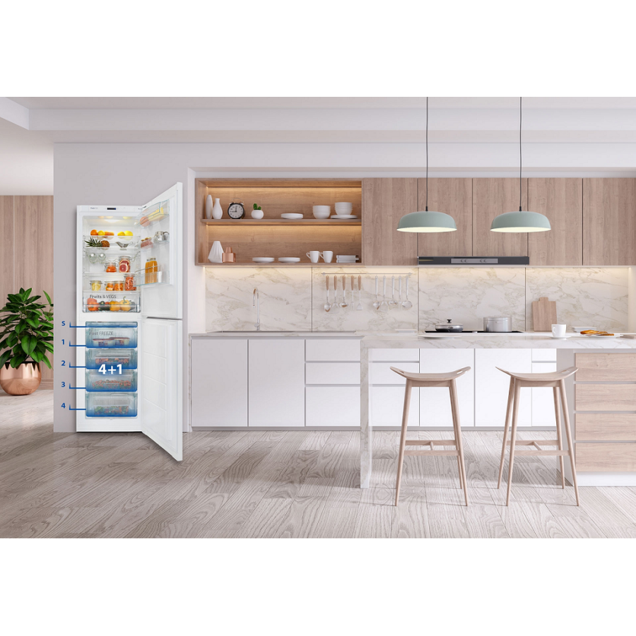 Світлодіодне освітлення, встановлене в морозильній камері, забезпечує відмінне освітлення - світло проникає в усі відсіки. У порівнянні зі звичайними лампами, вони більш міцні та стійкі до вібрацій і перепадів температури. Світлодіоди споживають до 80% менше електроенергії, не випромінюють ультрафіолетові та інфрачервоні промені та не містять ртуті.