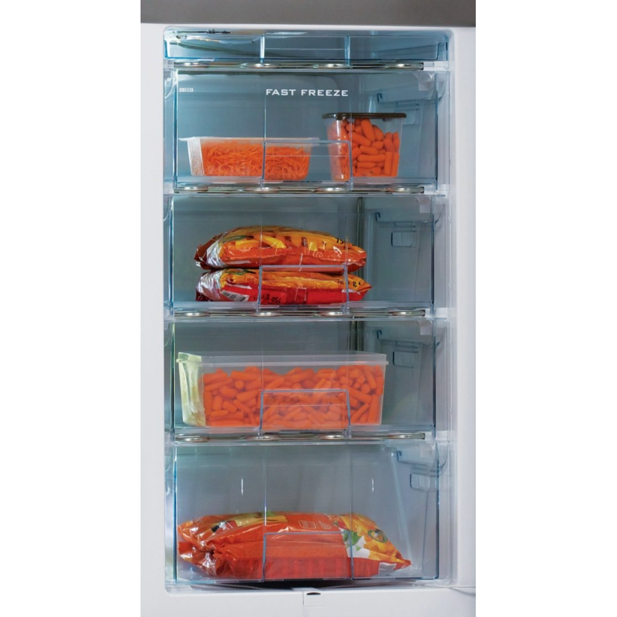Під час швидкого заморожування температура у відділенні Fast Freeze становить -18 °C і нижче. При такій температурі процес заморожування відбувається швидко, і кристали льоду не утворюються в клітинах харчових продуктів. Крім того, ця функція не дозволяє температурі заморожених продуктів підвищуватися, тому їх поживні речовини, смак, колір і поживна цінність оптимально зберігаються.