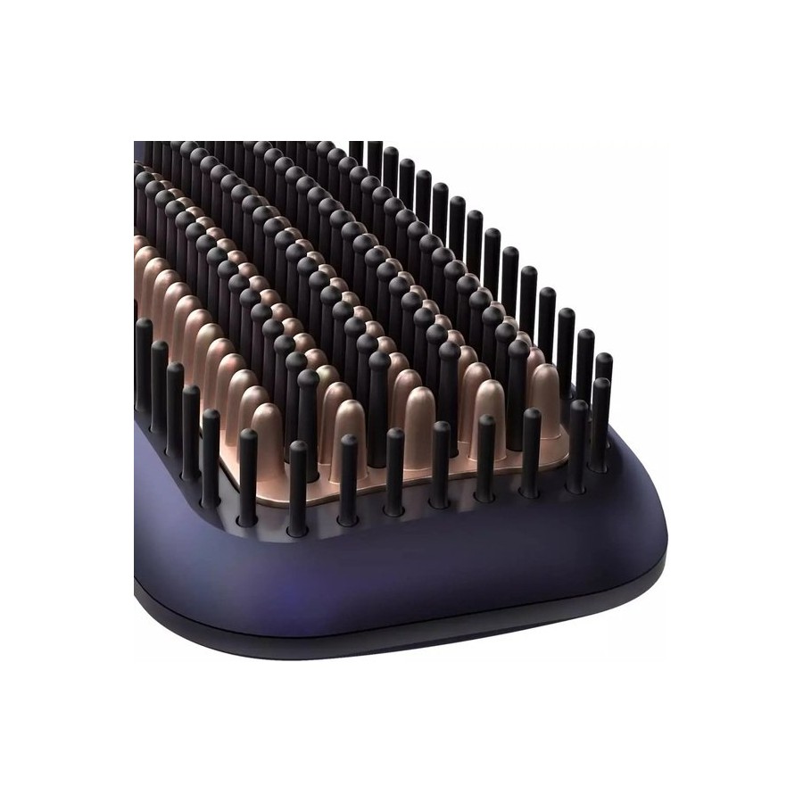 Температура щетинок залишається оптимальною, щоб мінімізувати пошкодження волосся від перегрфівання та зменшити тертя, завдяки чому волосся природним чином залишається прямим, шовковистим і гладеньким.