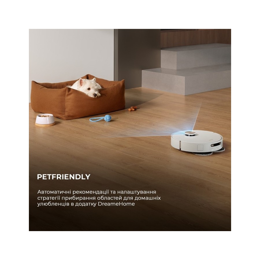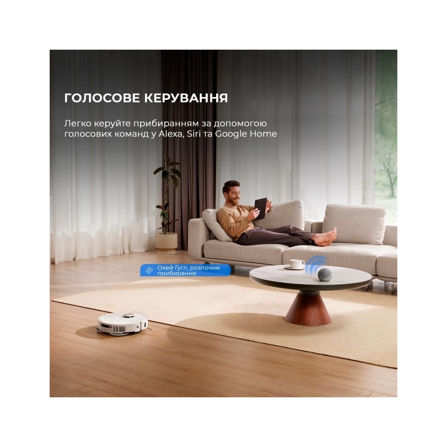 Керуйте роботом так, як вам зручно! Ви можете керувати через програму Dreamehome на смартфоні або планшеті. А також давати команди голосом через голосові помічники Google Home, Alexa або Siri.