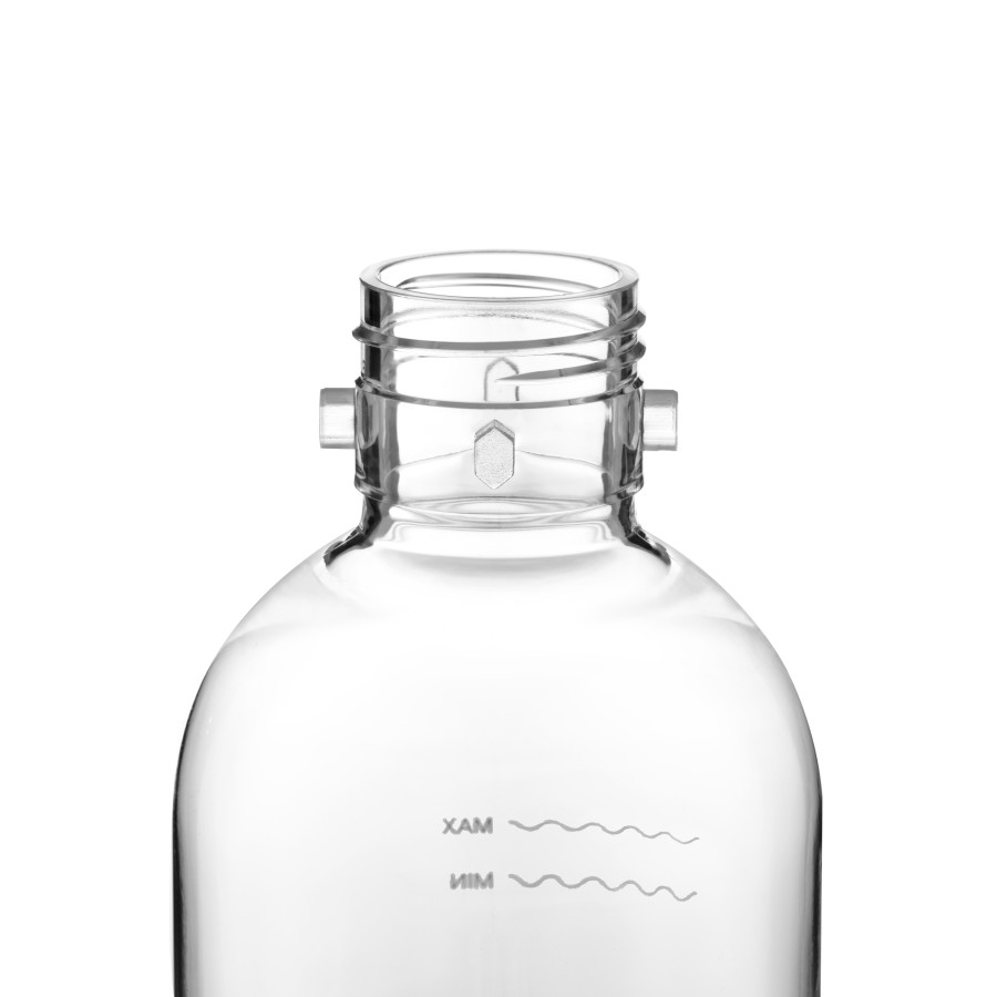 Герметична кришка забезпечує збереження напоїв свіжими й насиченими газом. Конструкцією передбачено гвинтовий тип фіксації. Діапазон робочих температур – від 1 до 49 °C. Не рекомендовано миття в посудомийній машині та ополіскування водою температурою понад +50 °C.