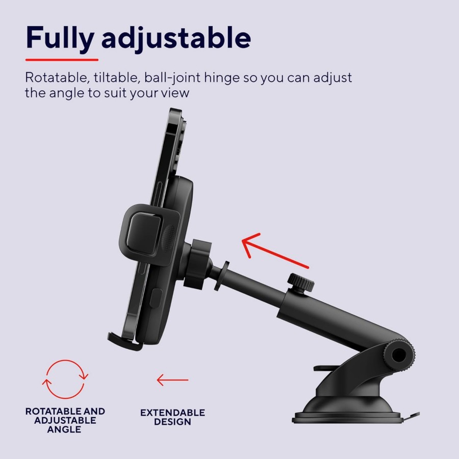 На дорозі можуть бути звивисті повороти, тому Runo може крутитися й повертатися – шарнір із кульковим шарніром, який можна обертати та нахиляти, дає змогу регулювати кут відповідно до вашого огляду, а розсувна конструкція допомагає тримати телефон під рукою для зручної навігації.