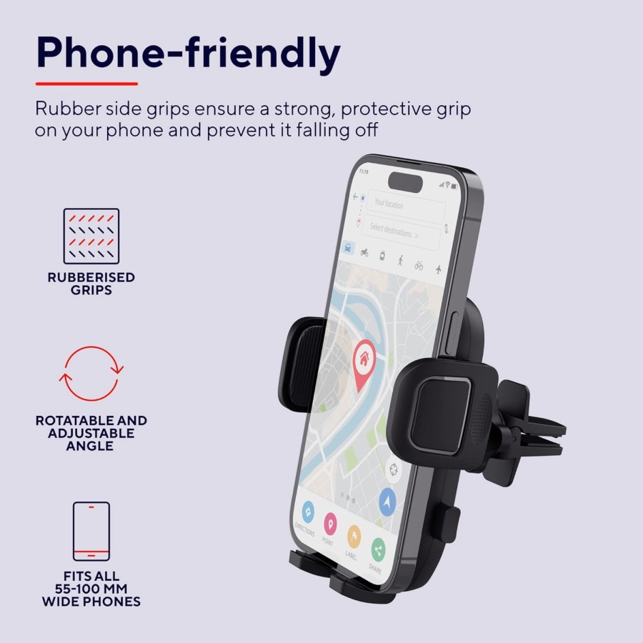 Ви отримуєте ремінь безпеки, ваш телефон отримує Runo! Ваш телефон заслуговує на те, щоб подорожувати так само безпечно, як і ви, тому гумові бічні ручки міцно тримають усі телефони шириною 55–100 мм і забезпечують плавну та безпечну поїздку.