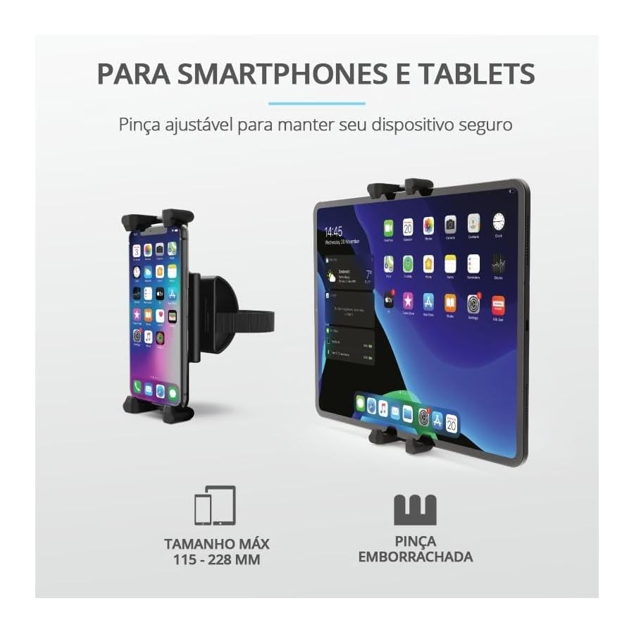 Автомобільний тримач для телефону та планшета Trust Rheno — це рішення 2-в-1 для кріплення телефону та планшета в автомобілі. За допомогою цього тримача ви можете легко встановити один із пристроїв на підголівник автомобіля. Універсальне кріплення преміум-класу надійно утримує ваш планшет або телефон.