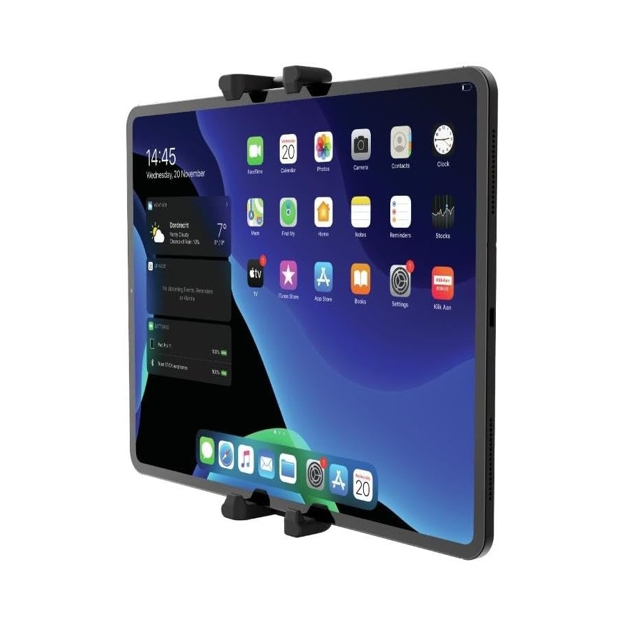 Rheno сумісний з усіма планшетами шириною до 195 мм (7-11 дюймів) і телефонами всіх основних брендів (таких як Apple, Samsung і Huawei). Завдяки регульованому фіксуючому затискачу він може міцно тримати ваш планшет або телефон навіть з його футляр, пропонуючи таким чином універсальне рішення для розміщення пристрою під час водіння.