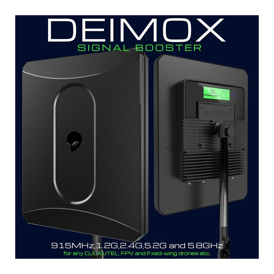 Оснащений багатодіапазонною функціональністю, Deimox підсилює робочі частоти 915 МГц, 1.2 ГГц, 2.4 ГГЦ, 5.2 ГГц і 5.8 ГГц, задовольняючи різноманітні стандарти зв'язку дронів. Його робоча напруга становить 12 В, а потужність передачі - до 10 Вт, що забезпечується антеною з високим коефіцієнтом підсилення, яка забезпечує коефіцієнт підсилення 2.4G>15 дБі±1 і 5G>21 дБі±1. Горизонтальні кути випромінювання становлять від 65° до 83°, що забезпечує широке покриття.