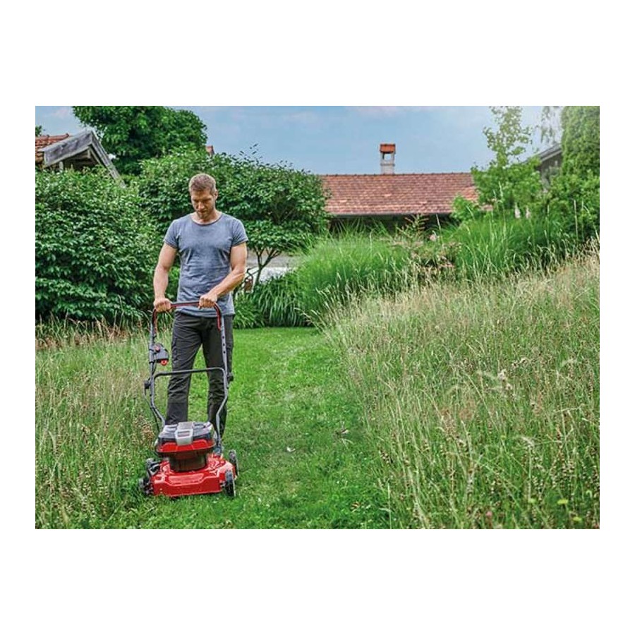 Акумуляторна газонокосарка Einhell GE-CM 36/48 Li M - Solo забезпечує ідеальну зелень у кожному куточку вашого домашнього саду – бездротова та потужна. Газонокосарка є пристроєм сімейства Einhell Power X-Change.