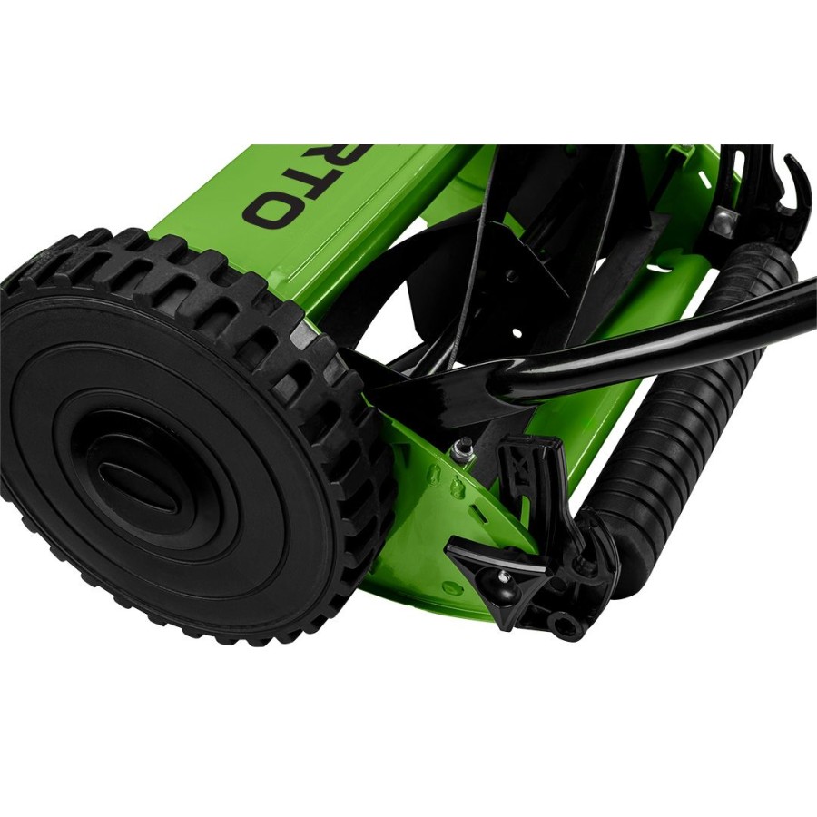 Ручна газонокосарка VERTO (арт. 15G350) з шириною зрізу 30 см - екологічна і компактна альтернатива електричним або бензиновим косаркам для невеликих ділянок присадибних газонів або невеликих садів, які потребують частого догляду. Косарка легка (важить 7 кг) і має місткий 16-літровий кошик. Регулювання висоти від 12 до 45 мм дозволяє розташовувати косарку нижче або вище від землі.
