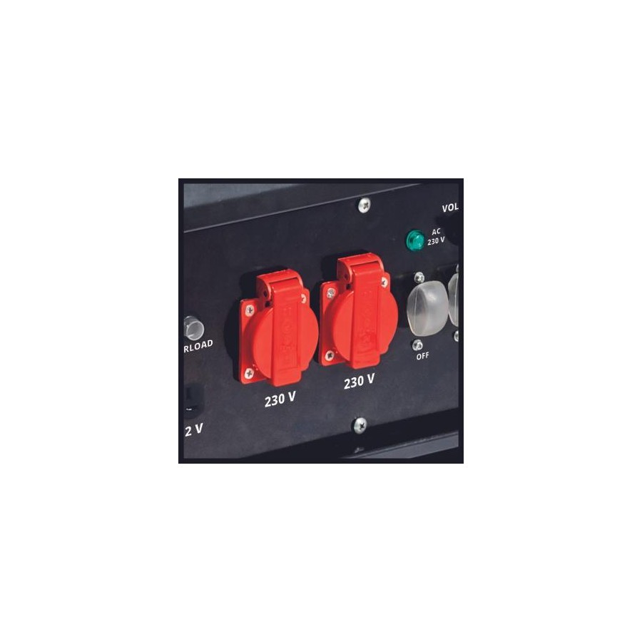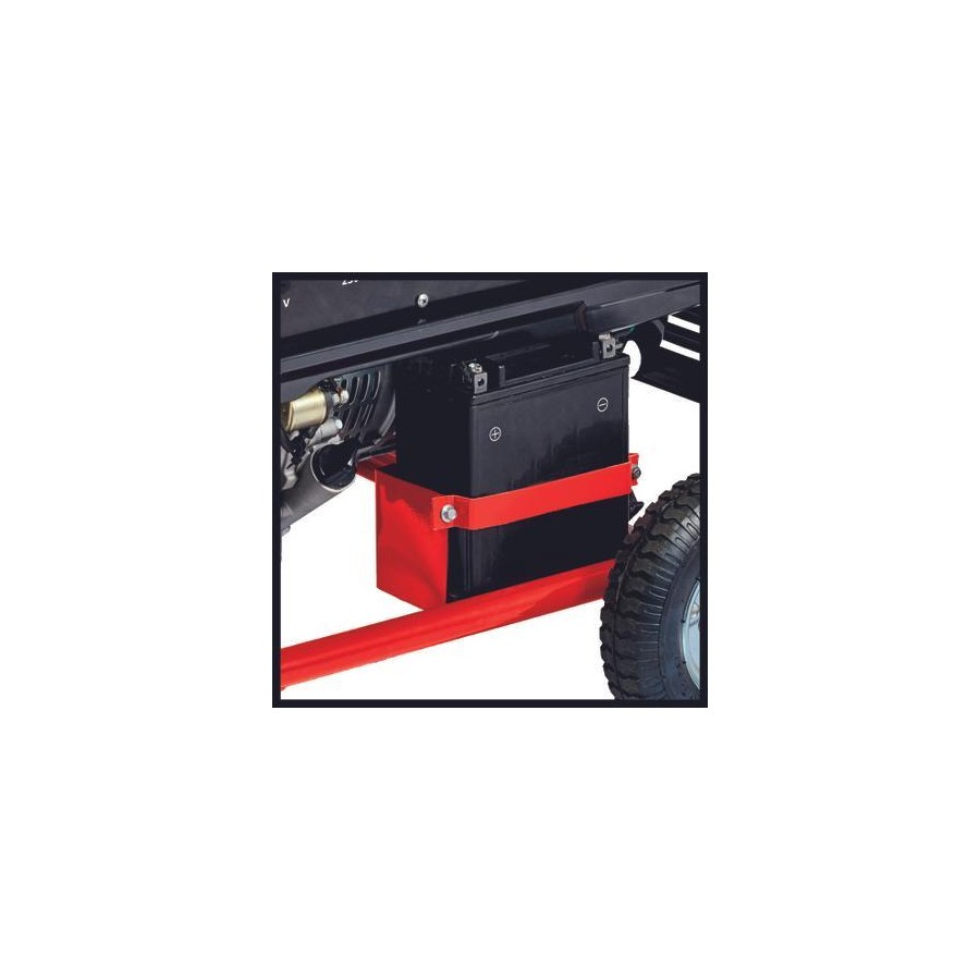 Функція AVR (автоматичне регулювання напруги) забезпечує стабільну вихідну потужність, електричний запуск розроблений для зручності користувача, а стартерна батарея вже входить в комплект поставки. Великий 25-літровий бак з індикатором рівня підходить для тривалої роботи генератора. Вимикачі перевантаження і захист від нестачі масла забезпечують безпеку і тривалу роботу. Два великих колеса і складна ручка роблять генератор мобільним і забезпечують легке транспортування з місця на місце.